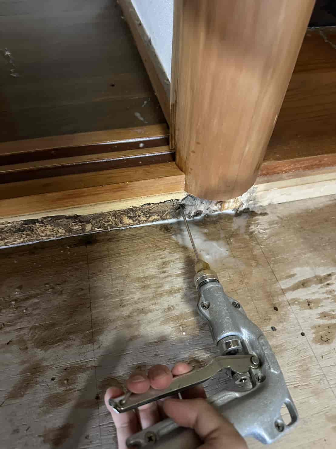 の防除薬剤。喰いつきがよくシロアリ被害の検査と