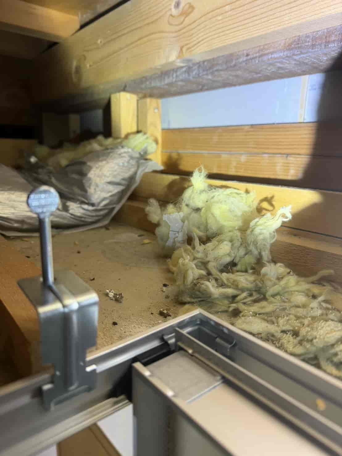 ネズミによって荒らされ、断熱性能や衛生面に問題のある箇所のみを選別撤去。