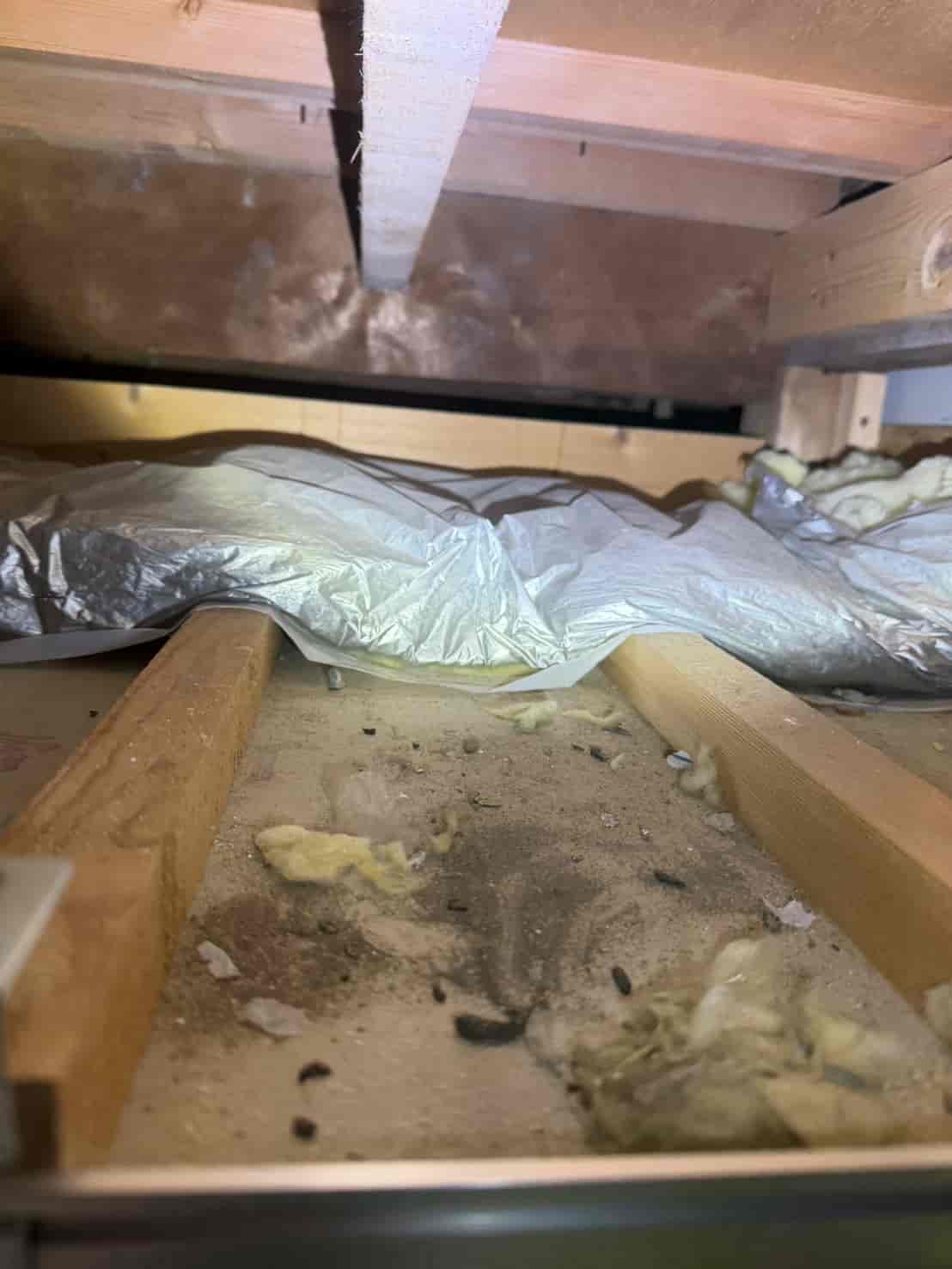 •和室床下に残るネズミの動線・糞・断熱材の荒らし跡