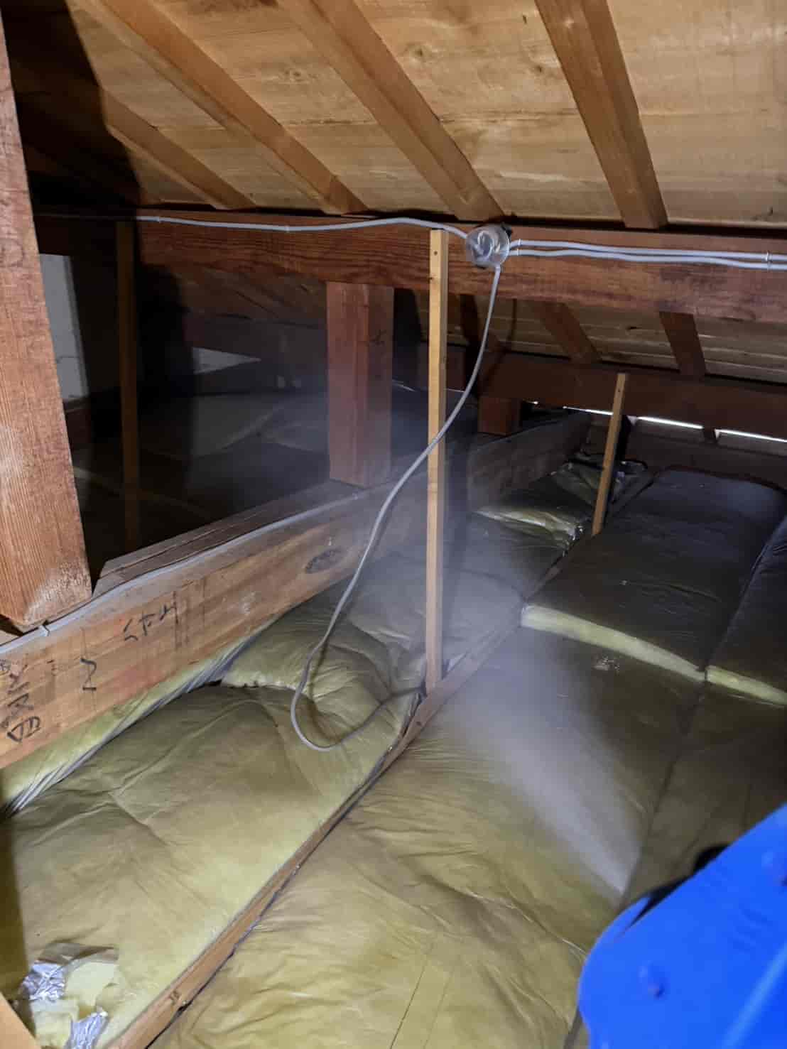 対策として、まず天井裏および室内に燻煙処理を行いました。