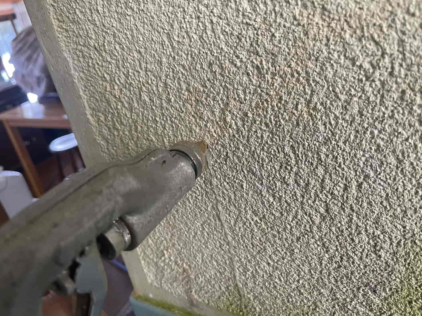施工内容としては、まず風呂場の壁面に穿孔を行い、専用の防蟻薬剤を注入しました。タイルや壁内部は湿気がこもりやすく、シロアリにとって好条件となるため、内部までしっかり薬剤が行き渡るよう慎重に処理を行っています。穿孔後は適切に穴埋めを行い、見た目や防水性にも配慮しました。
