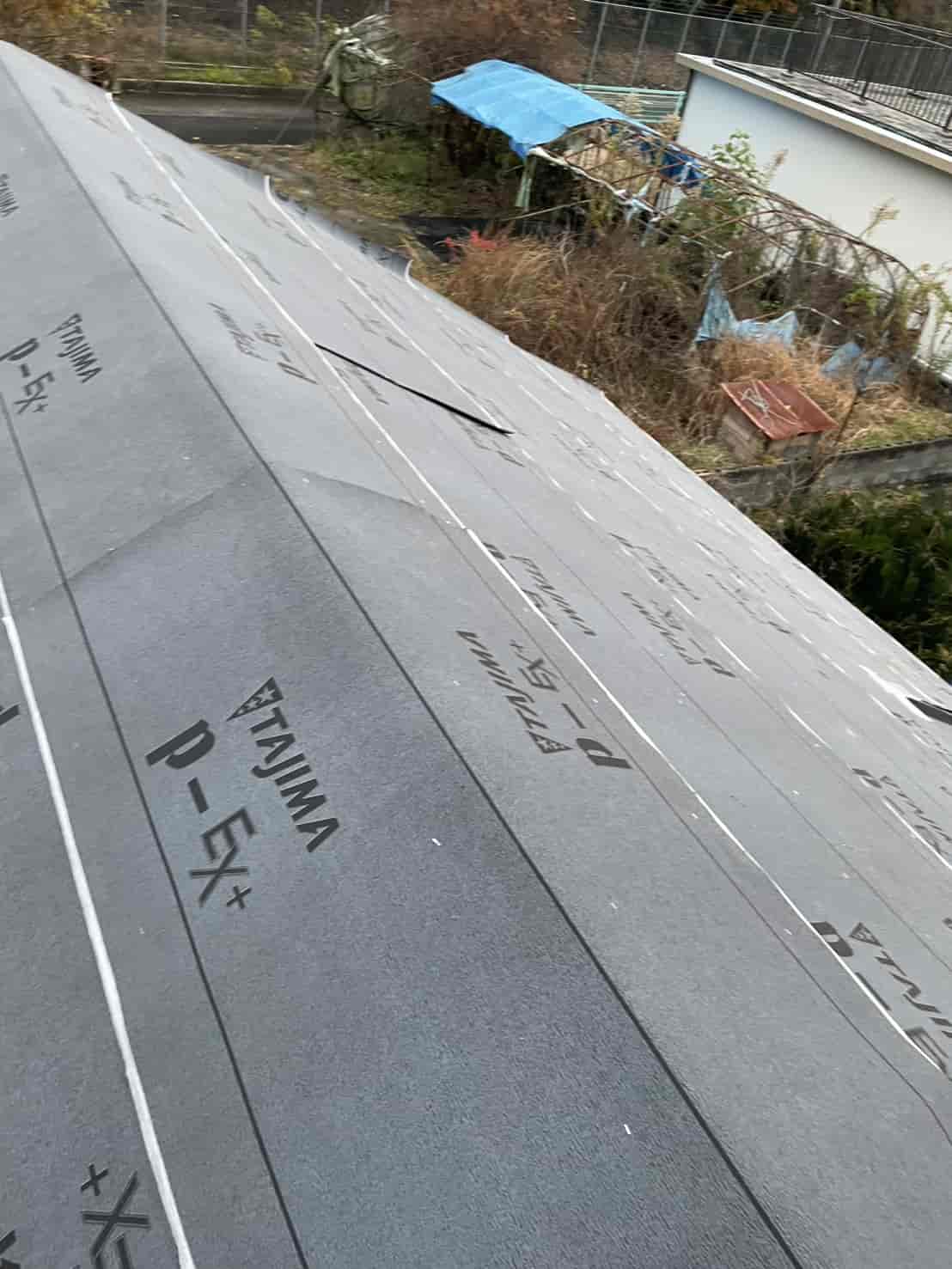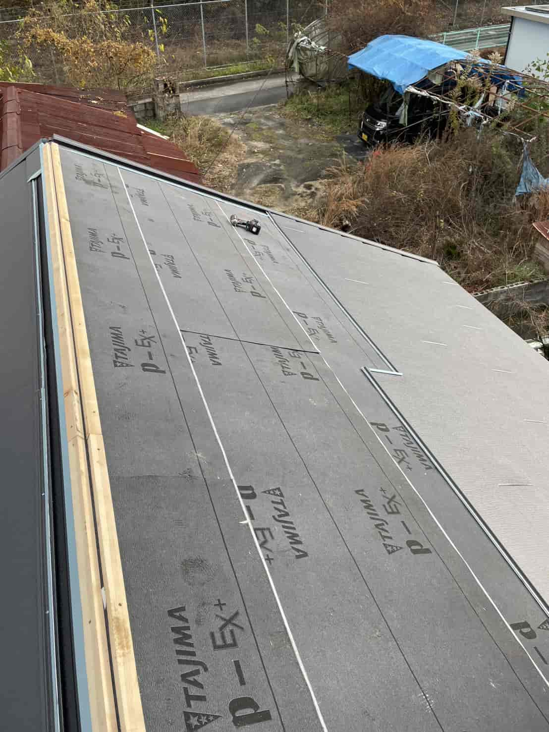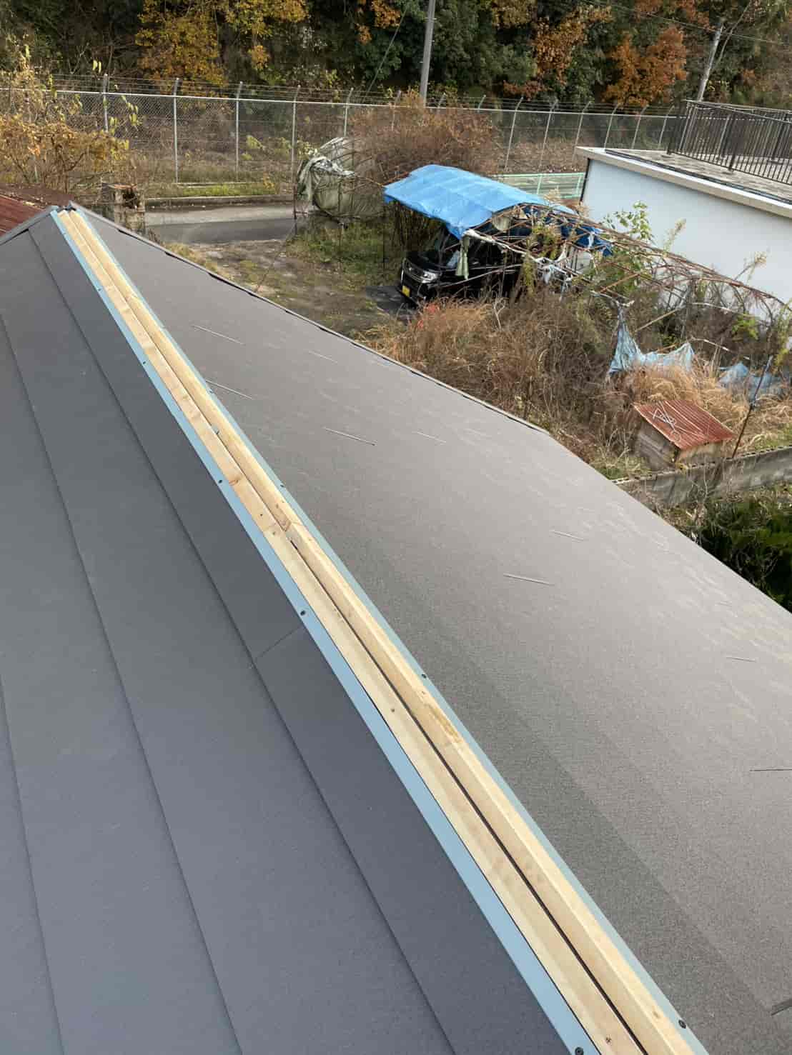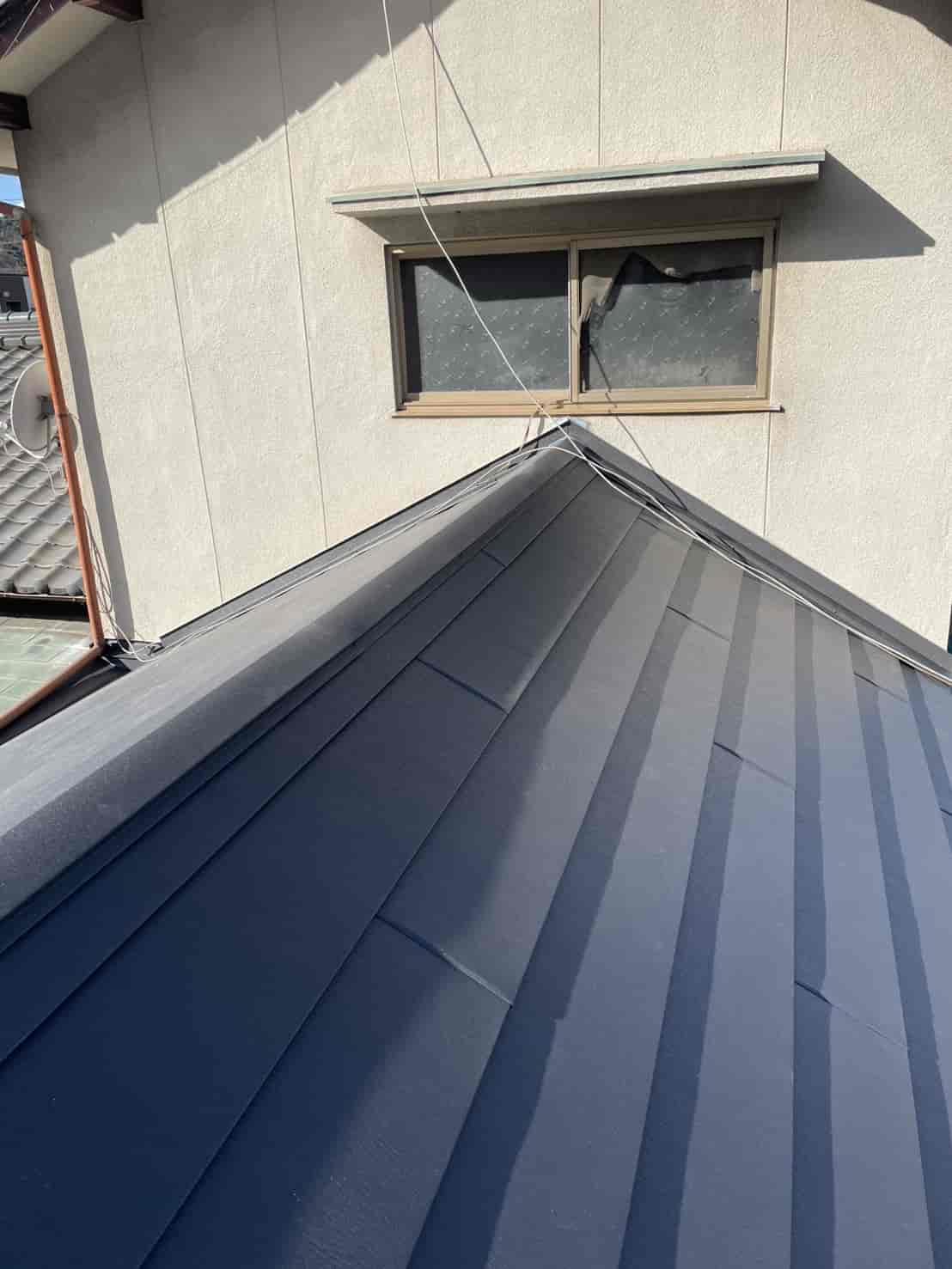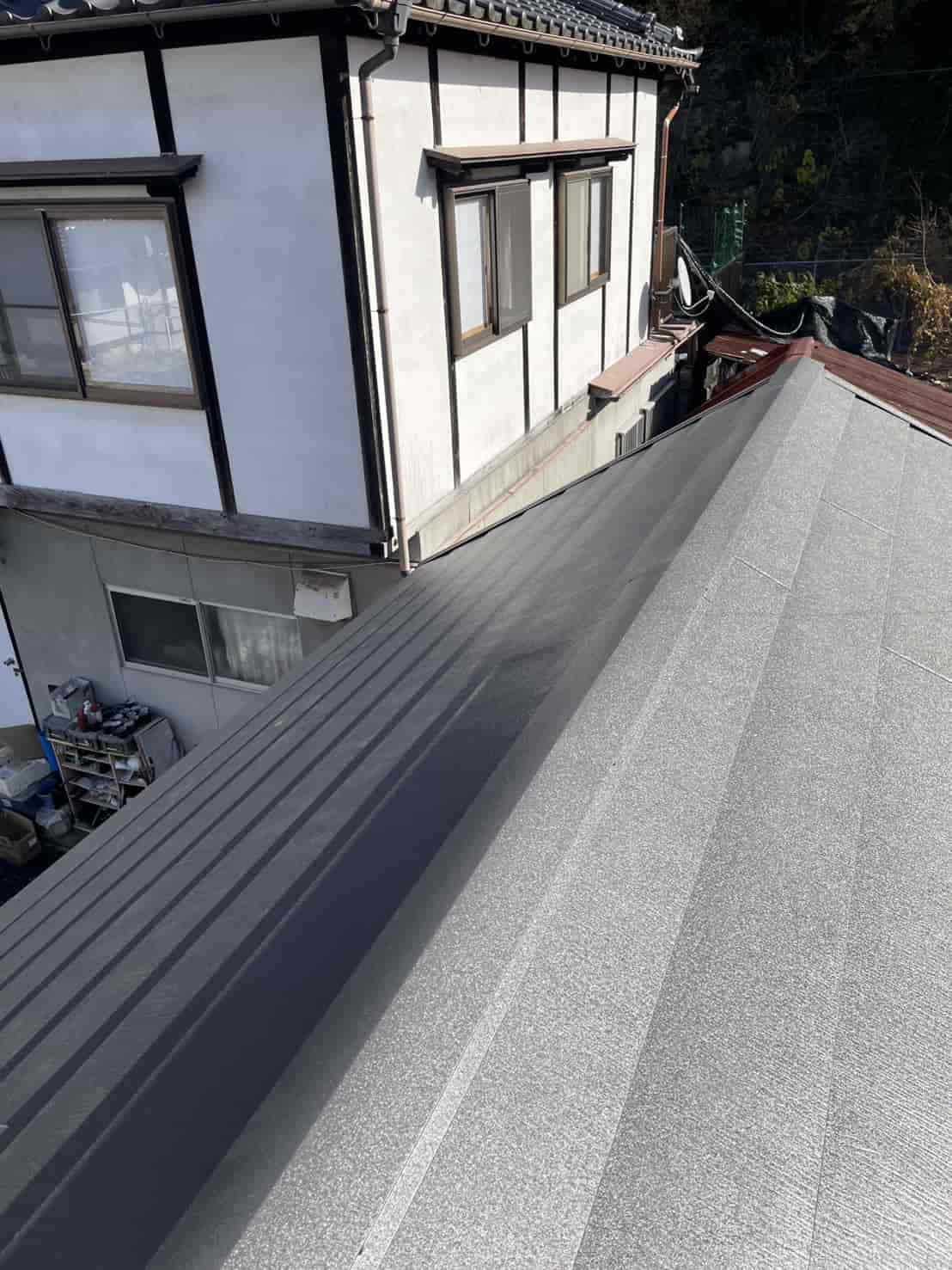 屋根全体の劣化を確認したため、部分補修ではなく屋根全面葺き替えをご提案し、アイジー工業「スーパーガルテクト」にて施工しました。併せて谷部はガルバリウム鋼板による板金を製作・施工し、雨漏り対策を行いました。