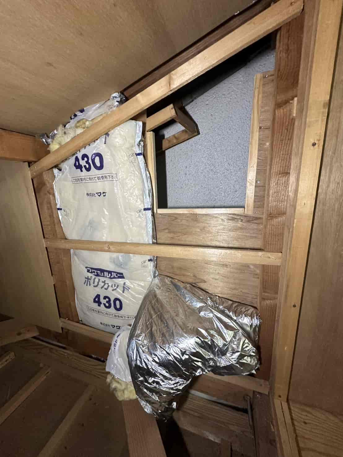 まずは天井裏を確認するため、壁際の天井裏点検口および壁板を慎重に脱着しました。