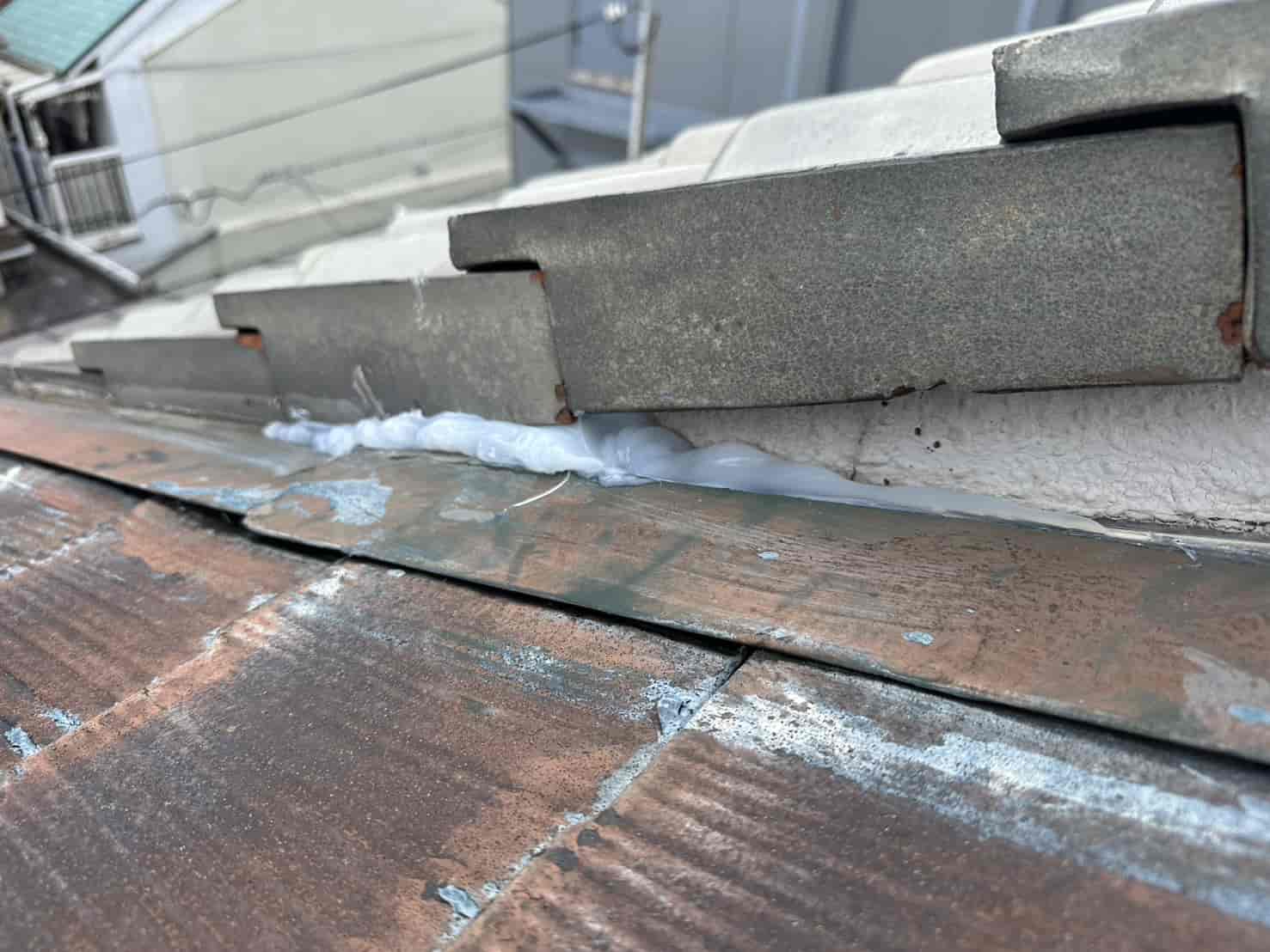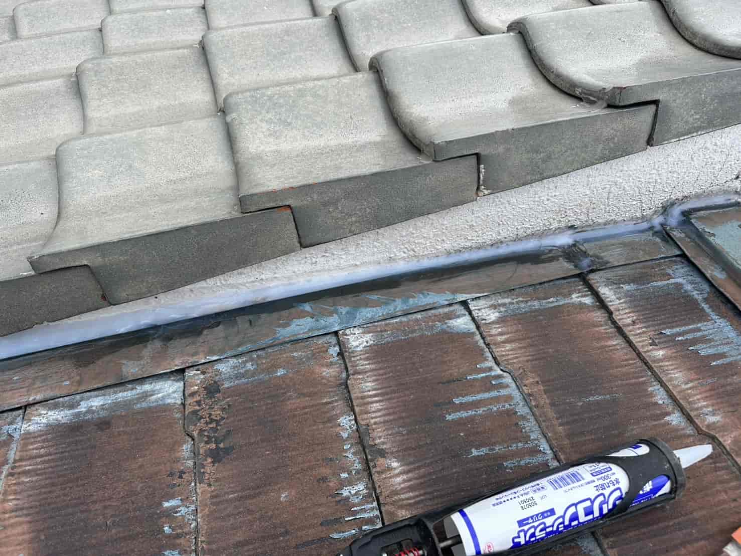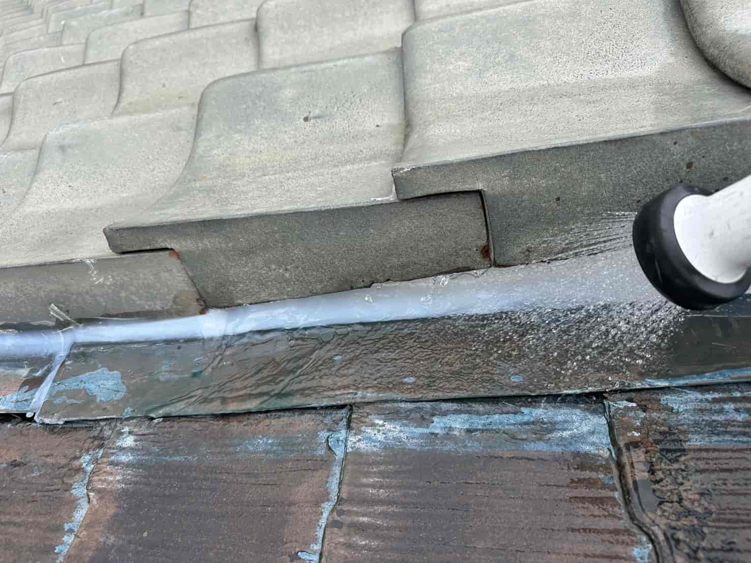 特に屋根取り合い部は風雨が集中する箇所のため、通常のシリコンではなく、耐候性・弾性に優れた変成シリコン系コーキングを採用しています。また、再発防止を目的として、既存のシールラインをやや広めに取り、密着性を高めました。