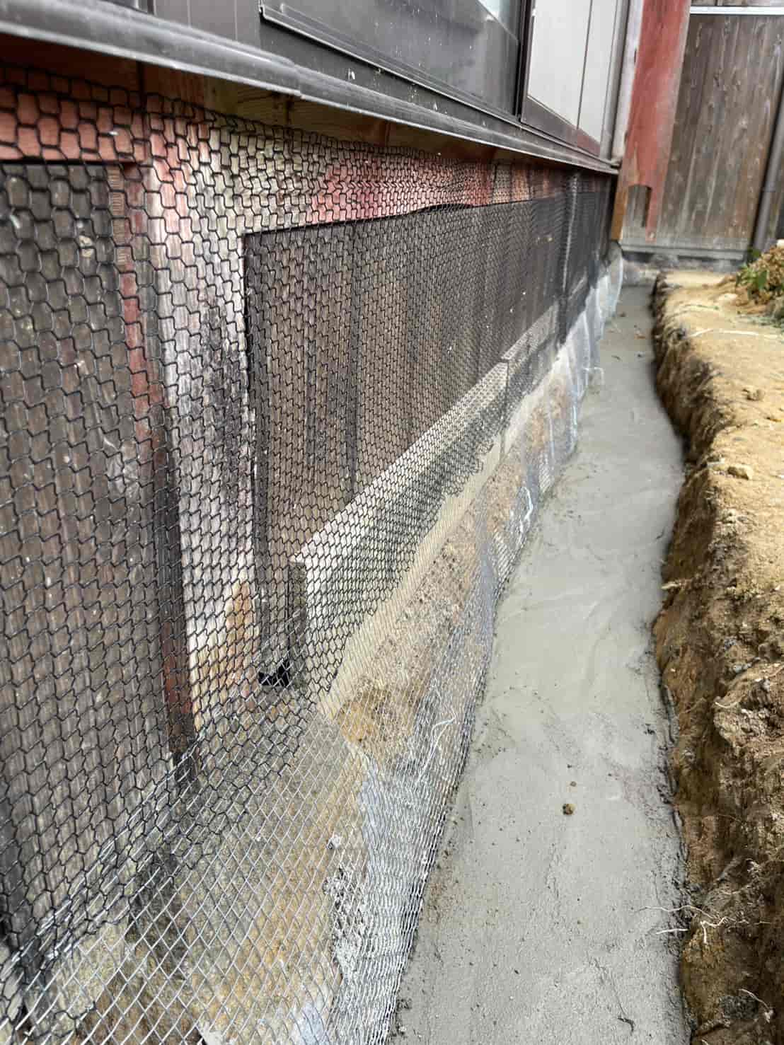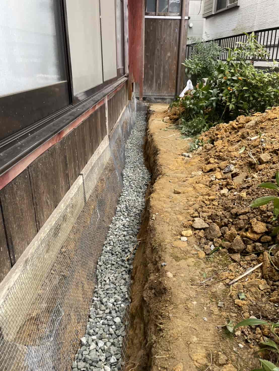現地を確認したところ、縁側の基礎部分に掘られた穴があり、害獣が床下へ侵入している可能性が高い状況でした。そのため、縁側の穴の補修および侵入防止対策をご提案し、ご依頼をいただきました。