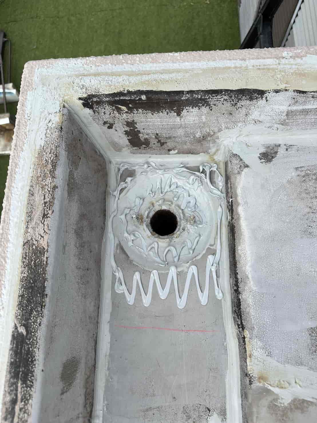 今回の川西市での工事では、ベランダの大規模な雨漏りに対し、ダイフレックス社のウレタン防水工法と改修ドレンの設置によって長期的な防水性を確保しました。