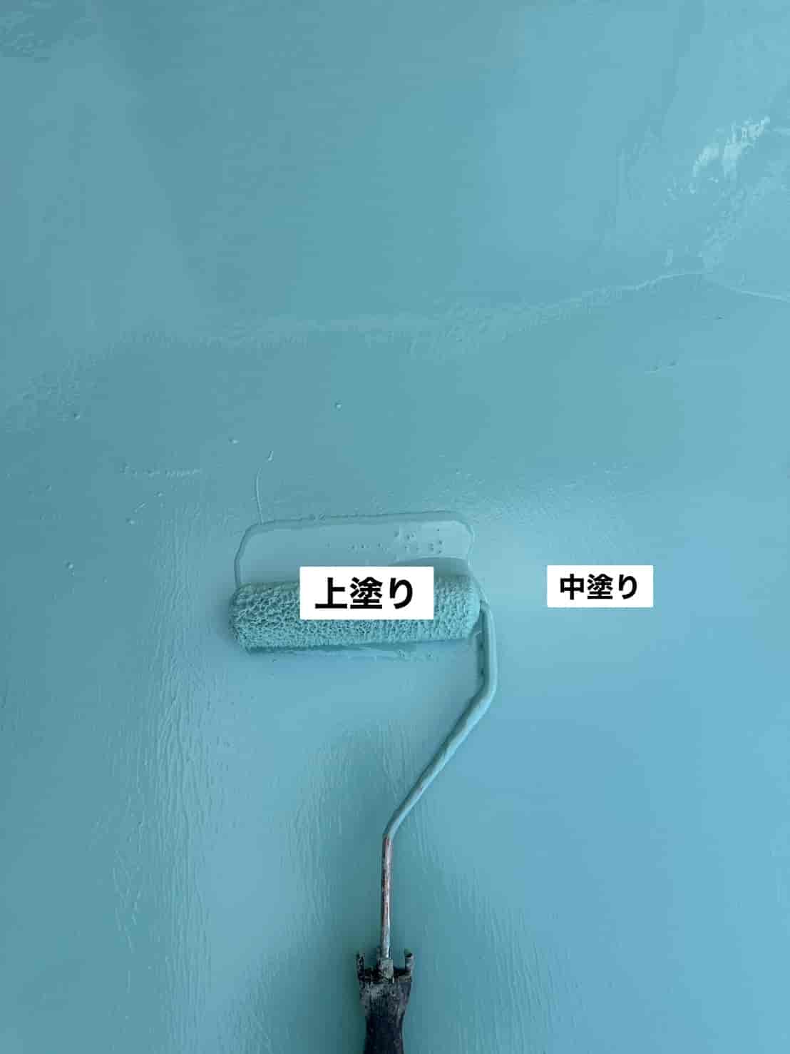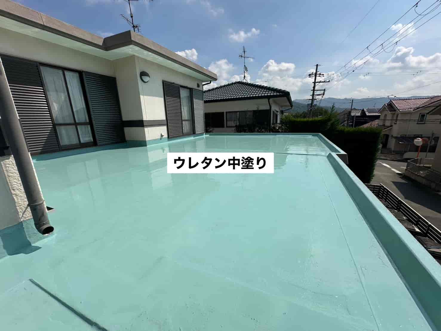 高耐久のウレタン防水材「エバーコートゼロワン」を中塗り。弾性のある膜を形成し、ひび割れの動きにも追従できる柔軟性を持たせます。