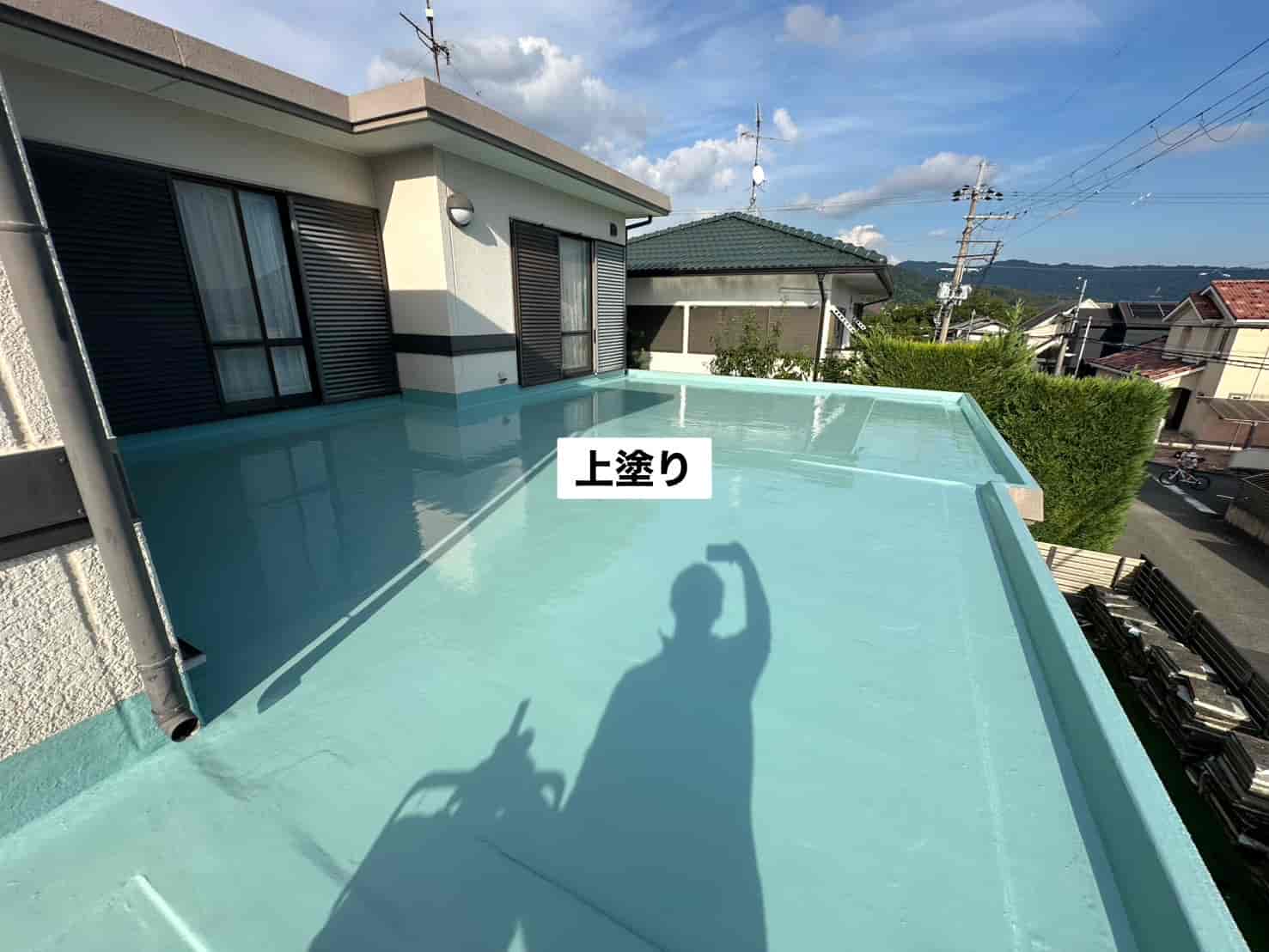 同材を重ね塗りし、防水層を厚みのある二層構造に仕上げます。これにより、長期にわたって安定した防水性能を発揮します。