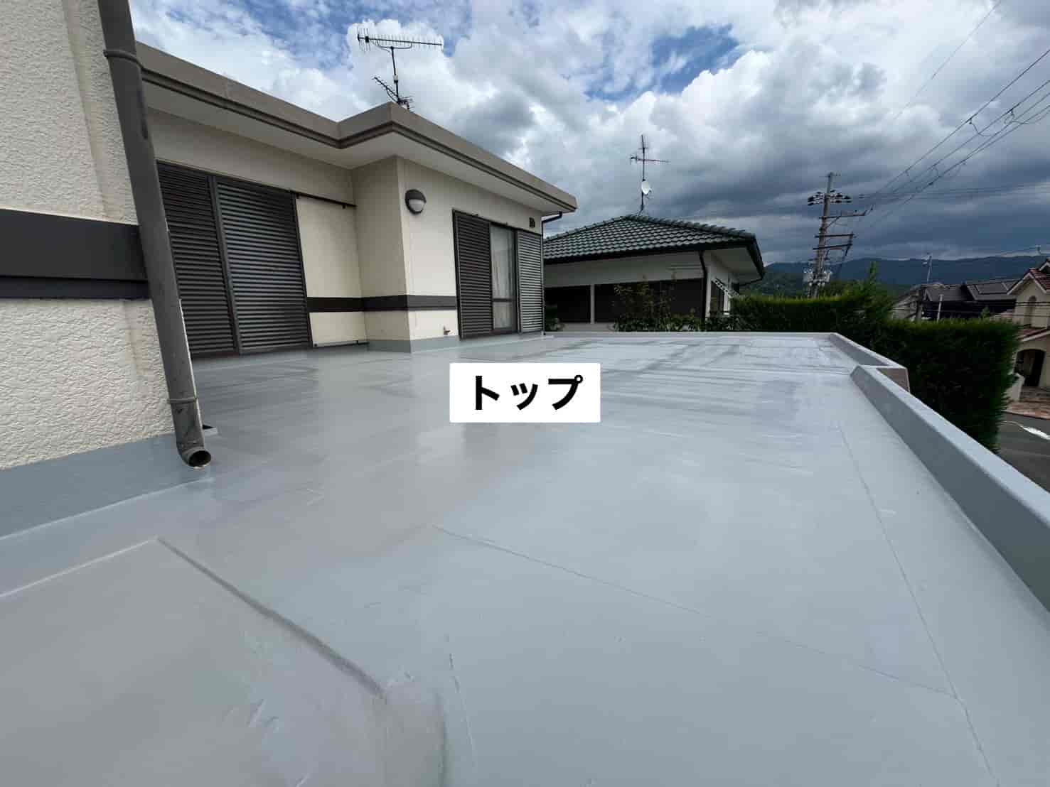 最終仕上げとしてトップコート「エクセルトップコート」を塗布。紫外線や風雨から防水層を守り、美観を維持すると同時にメンテナンス性を向上させます。