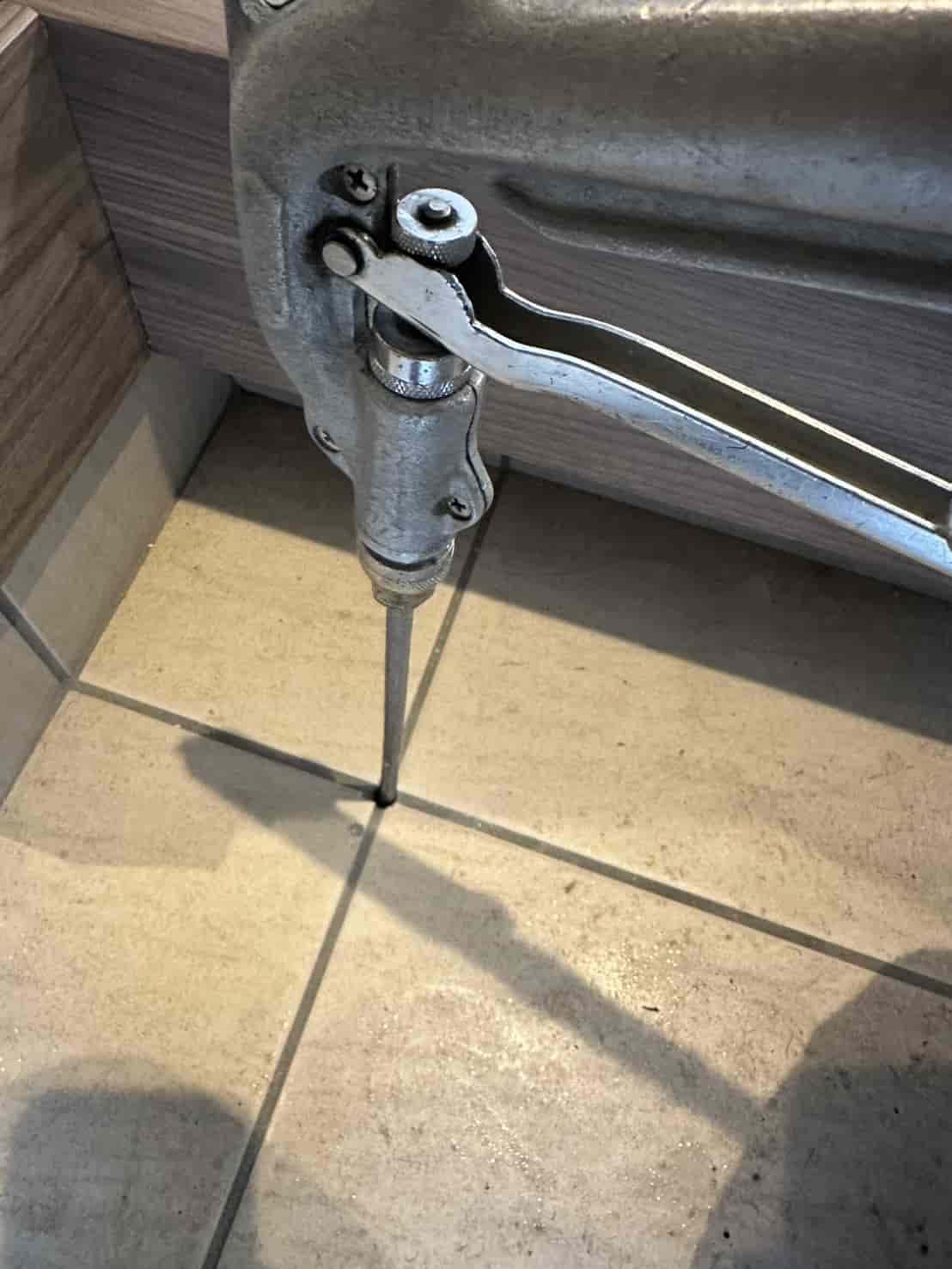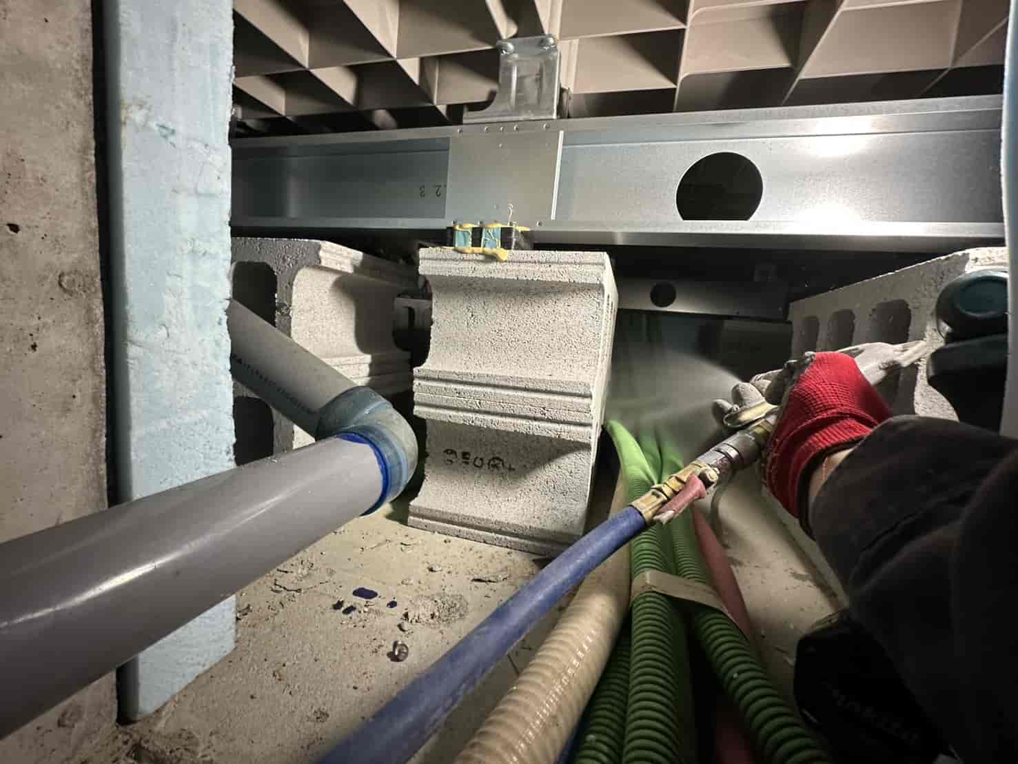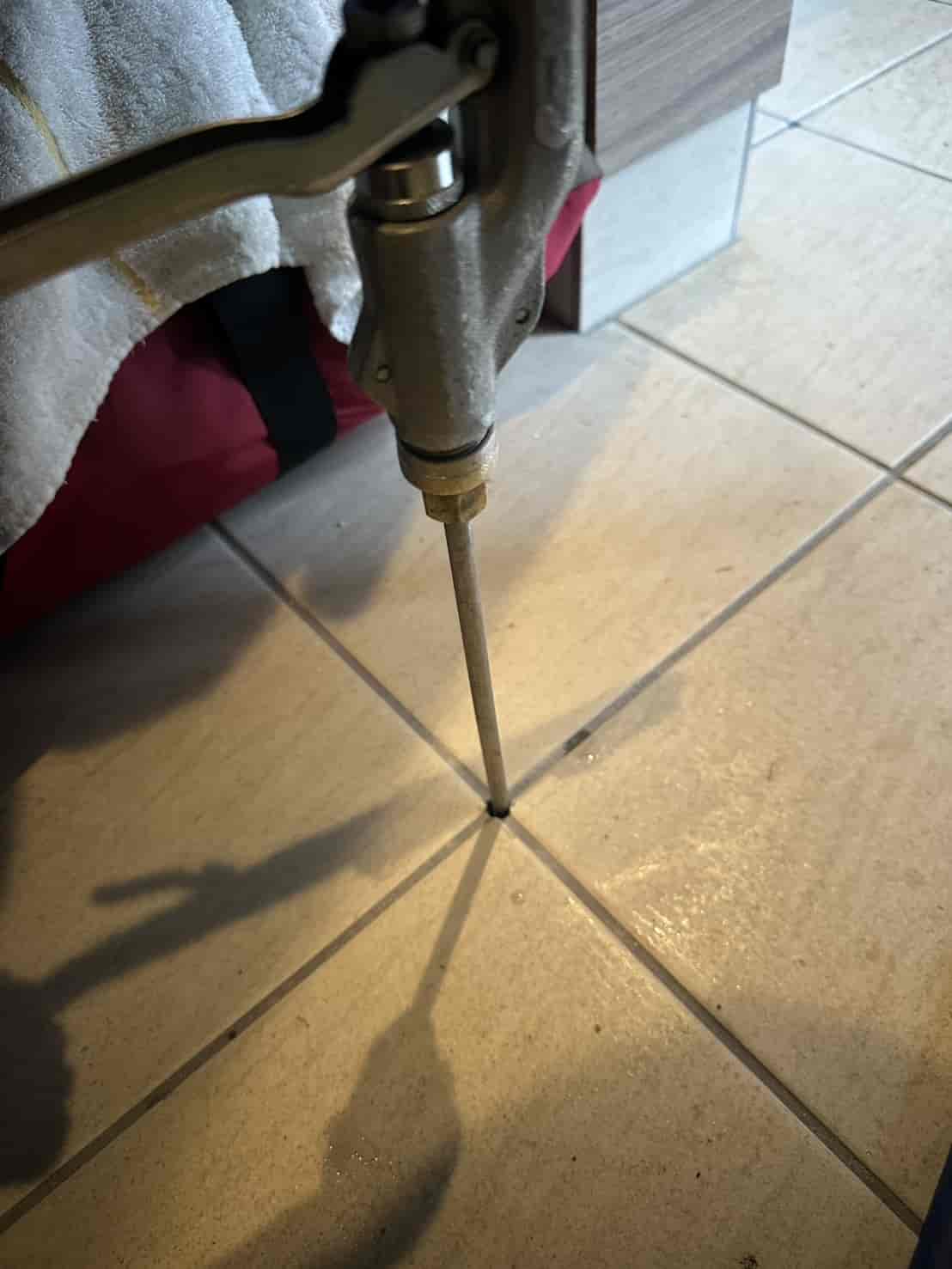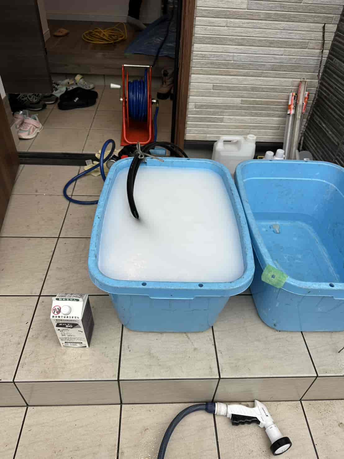 今回の住宅は玄関が広めのタイプでした。玄関部分は床下からの散布ができない構造のため、スラブタイル穿孔注入処理を行いました。タイルの目地部分などから穿孔し、薬剤をコンクリート下へ注入します。これにより、土間下からの白アリ侵入をしっかりブロックします。玄関は侵入リスクが高い箇所の一つです。ここをきちんと処理するかどうかで、予防効果に大きな差が出ます。