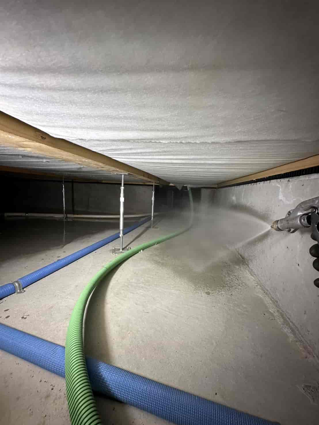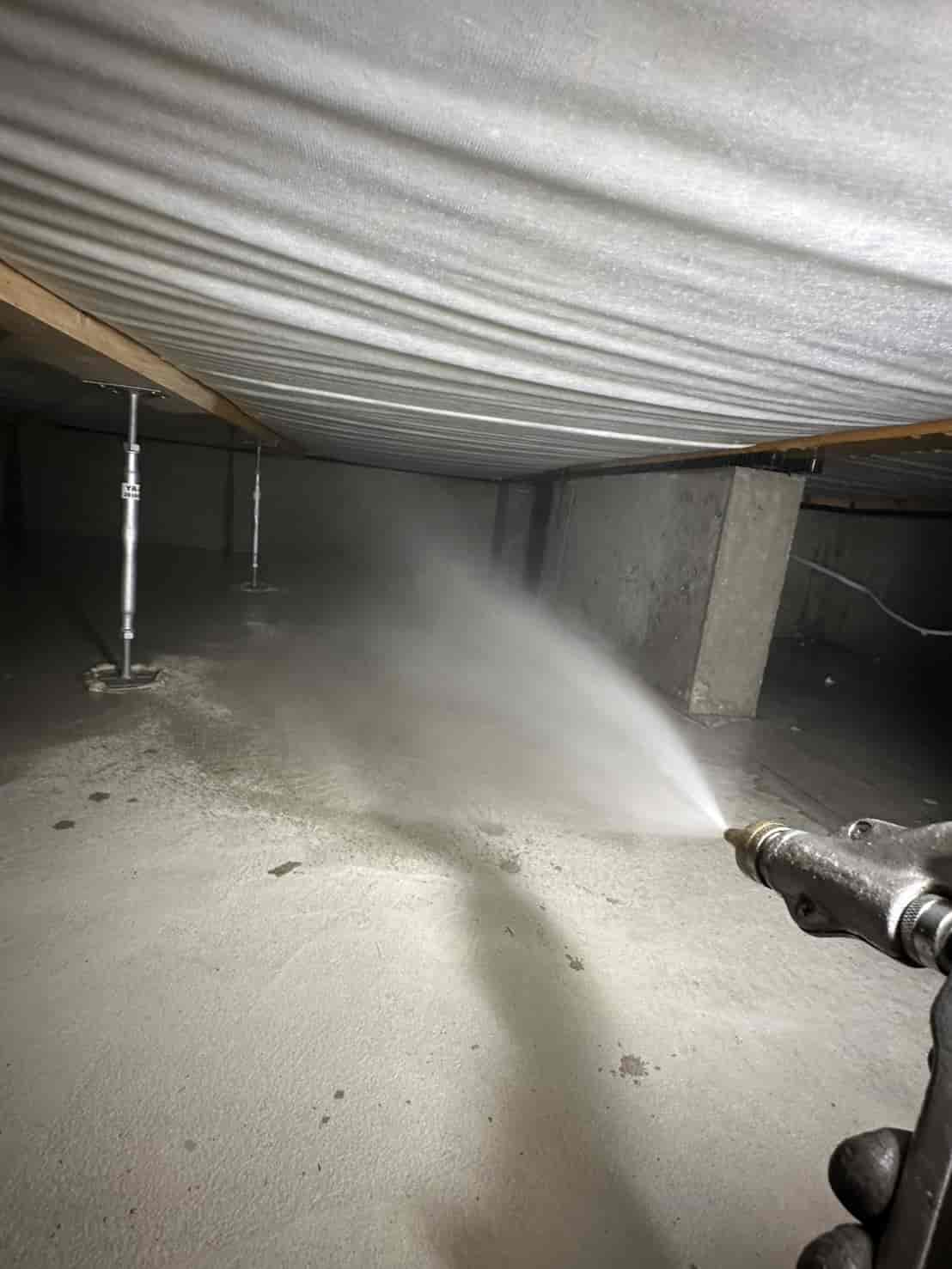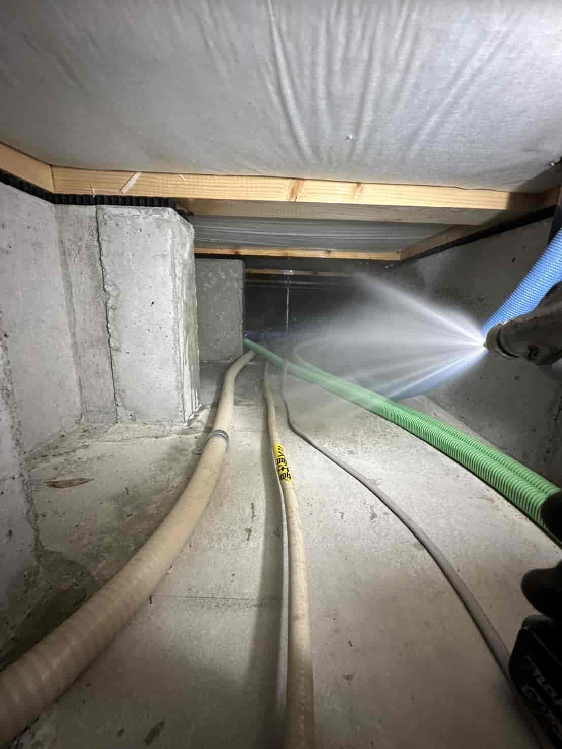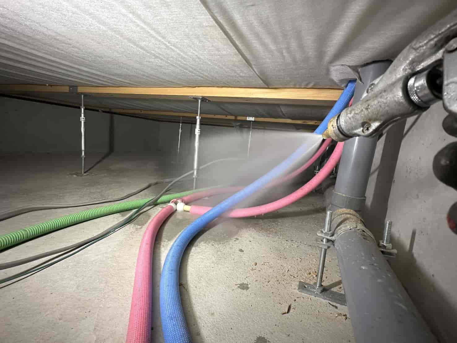 薬剤を床下全体に均一散布し、建物をバリアで囲うように施工しました。白アリは土中から侵入するため、床下全体への処理が非常に重要です。目に見える部分だけではなく、見えない部分まで確実に処理します。