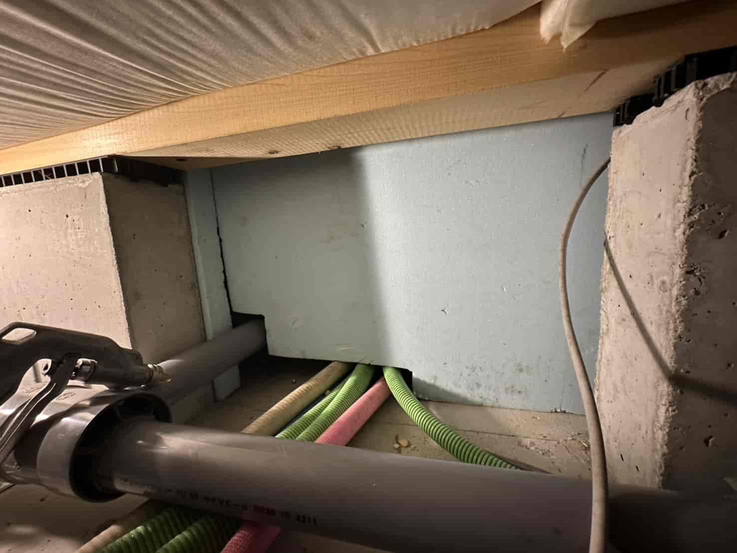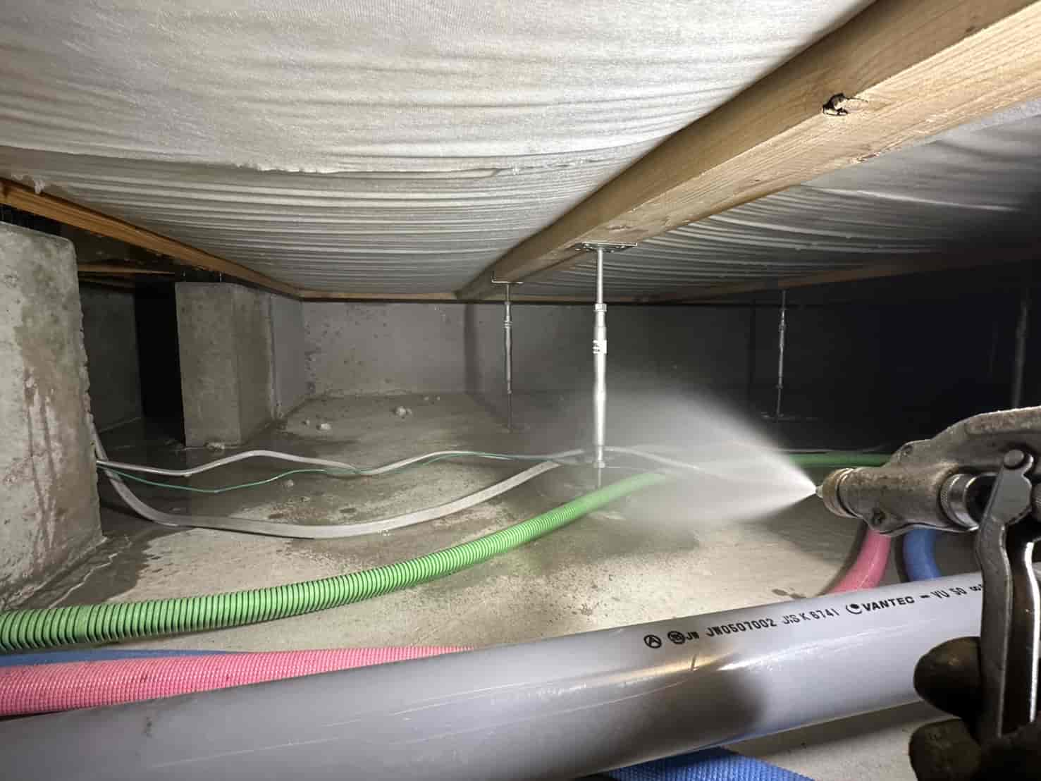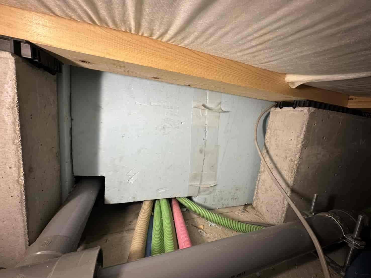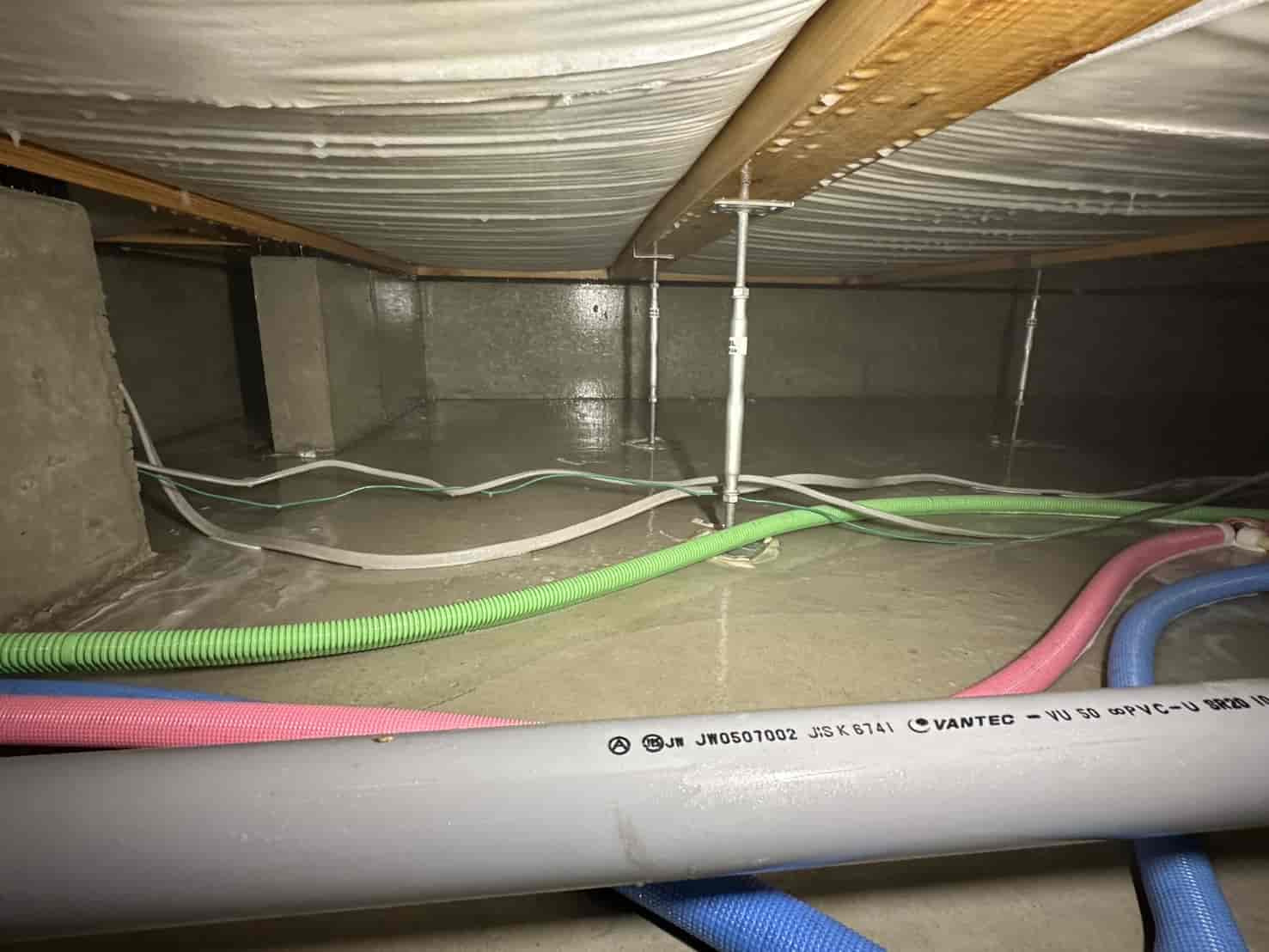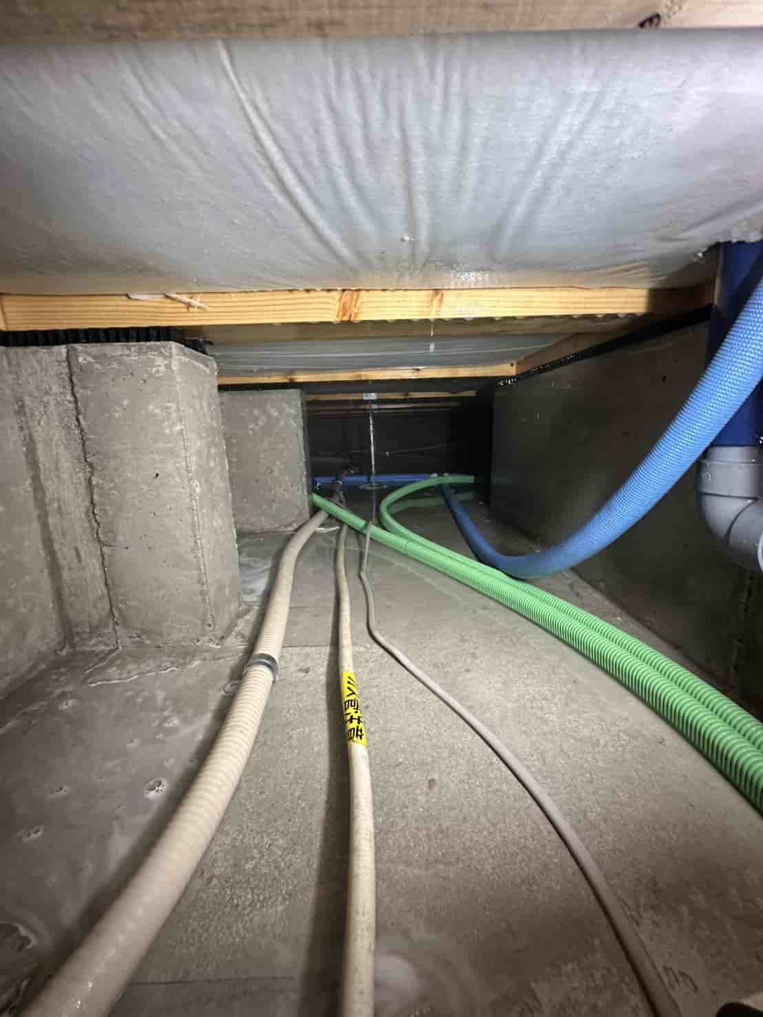 【対応】川西市にて、築5年の住宅で白アリ予防消毒工事を実施しました。床下全体の事前調査を行い、被害がないことを確認したうえでバリア工法による予防散布を施工。あわせて、床下から処理ができない広い玄関部分にはスラブタイル穿孔注入処理を実施し、土間下からの侵入対策も徹底しました。ハウスメーカーとの相見積もりの結果、価格・施工内容ともにご納得いただき、予防に最適なタイミングでの施工となりました。