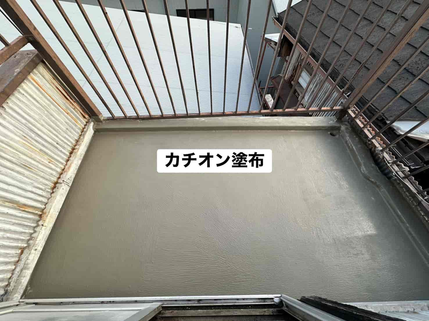 その上から上塗りを重ねて均一で滑らかな防水層を形成します。