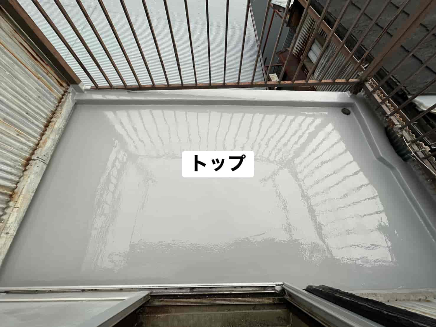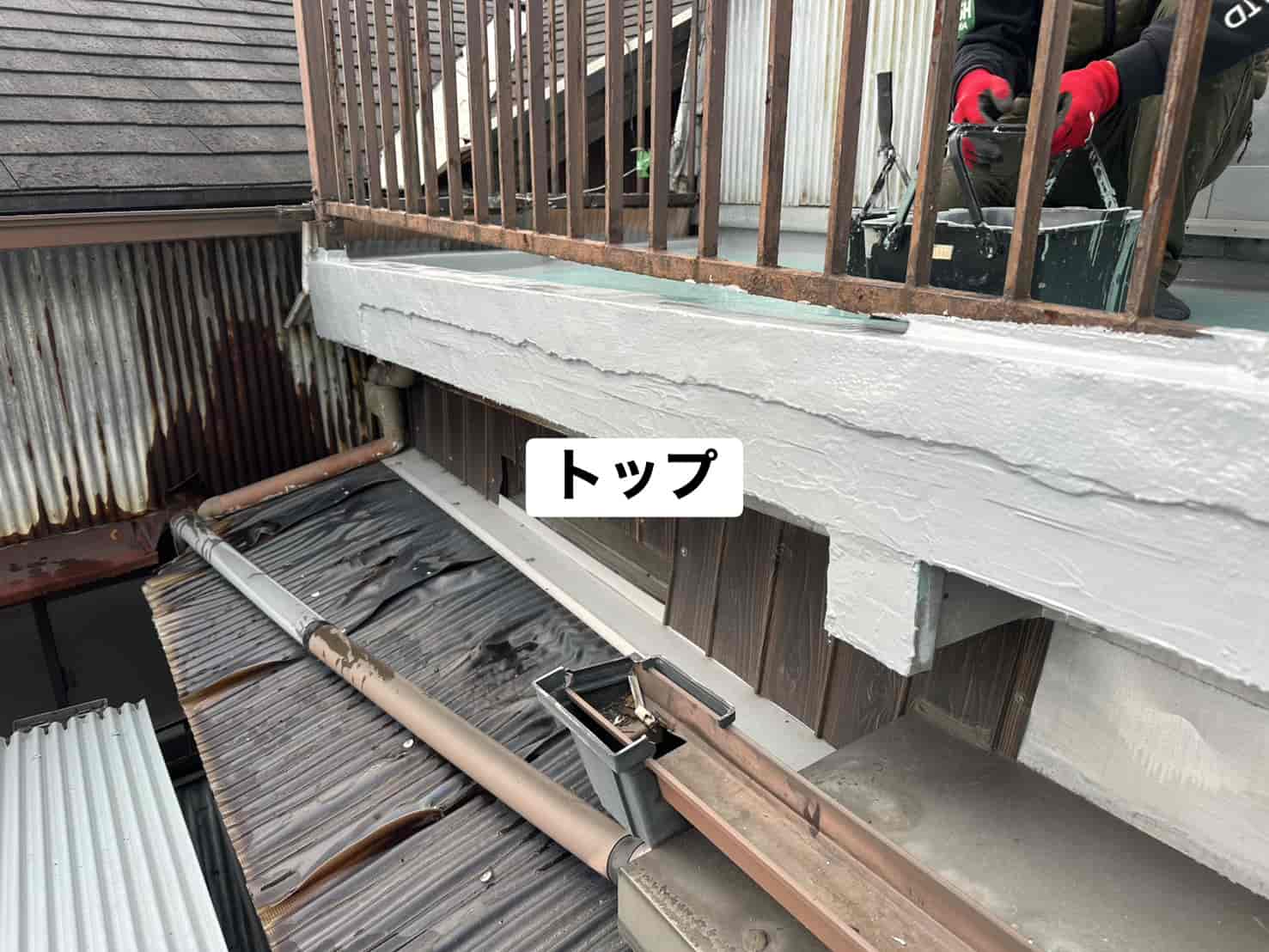 これは防水層を紫外線や熱、汚れから守る保護塗料で、美観を保つだけでなく、防水層そのものの寿命を延ばす役割もあります。