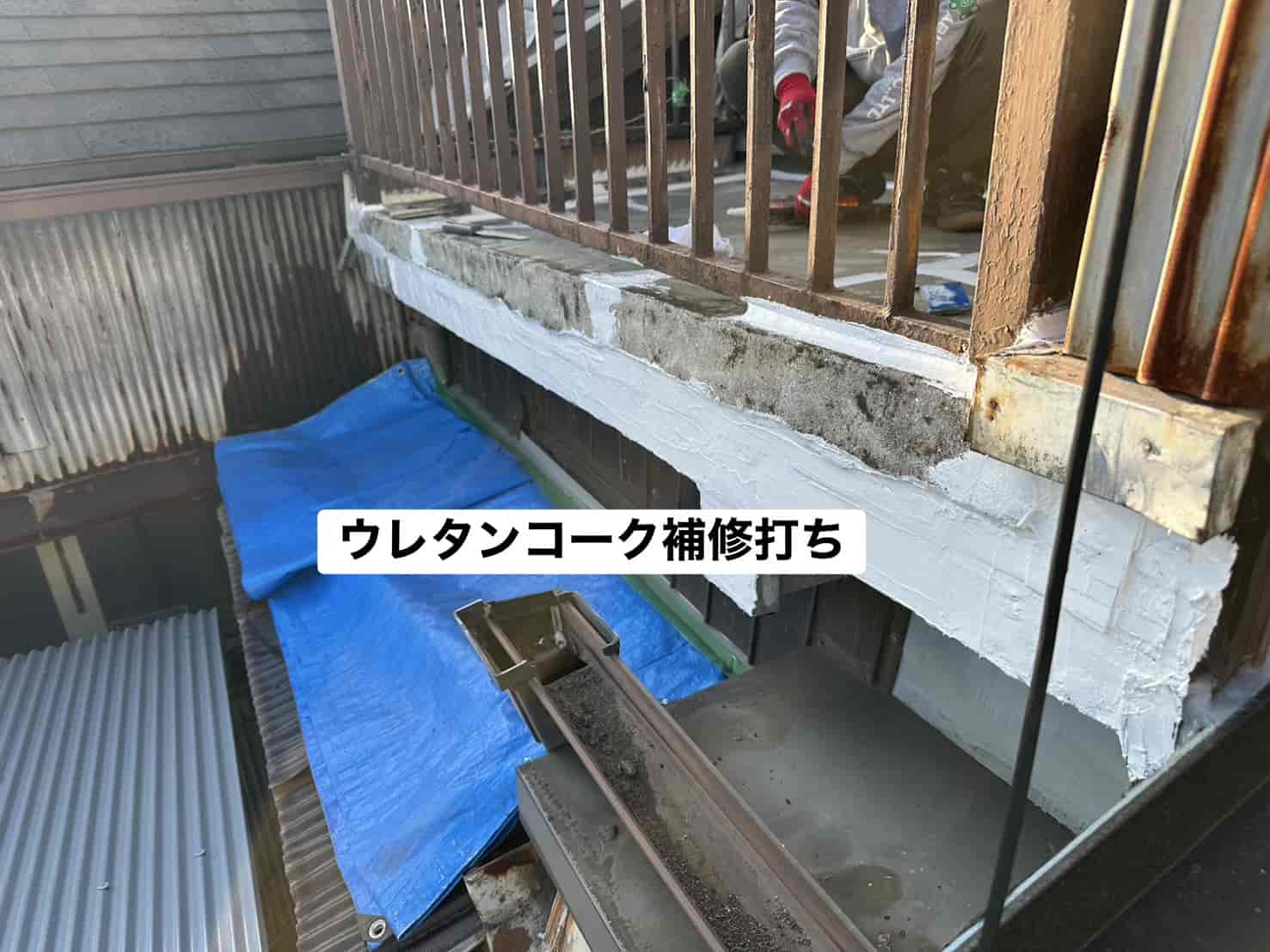 下地のひび割れ部分には、弾性のあるウレタンコーク材を充填します。