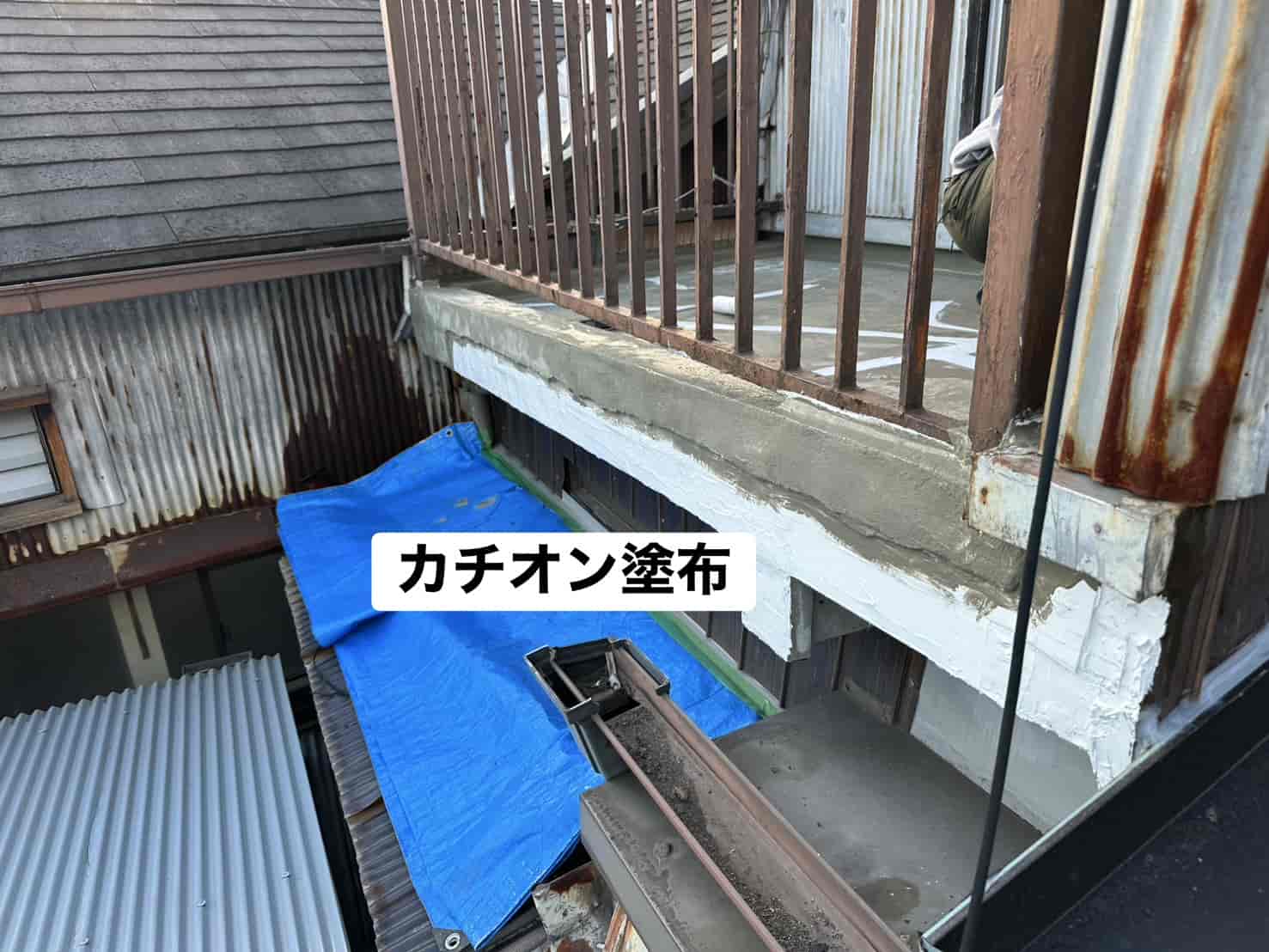 下地調整としてカチオン樹脂モルタルを全面に塗布します。