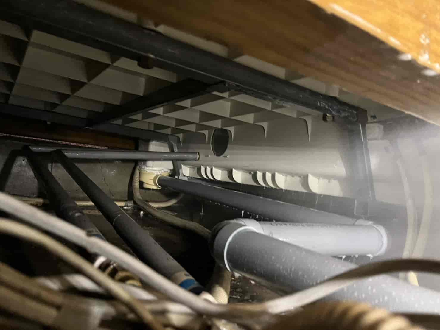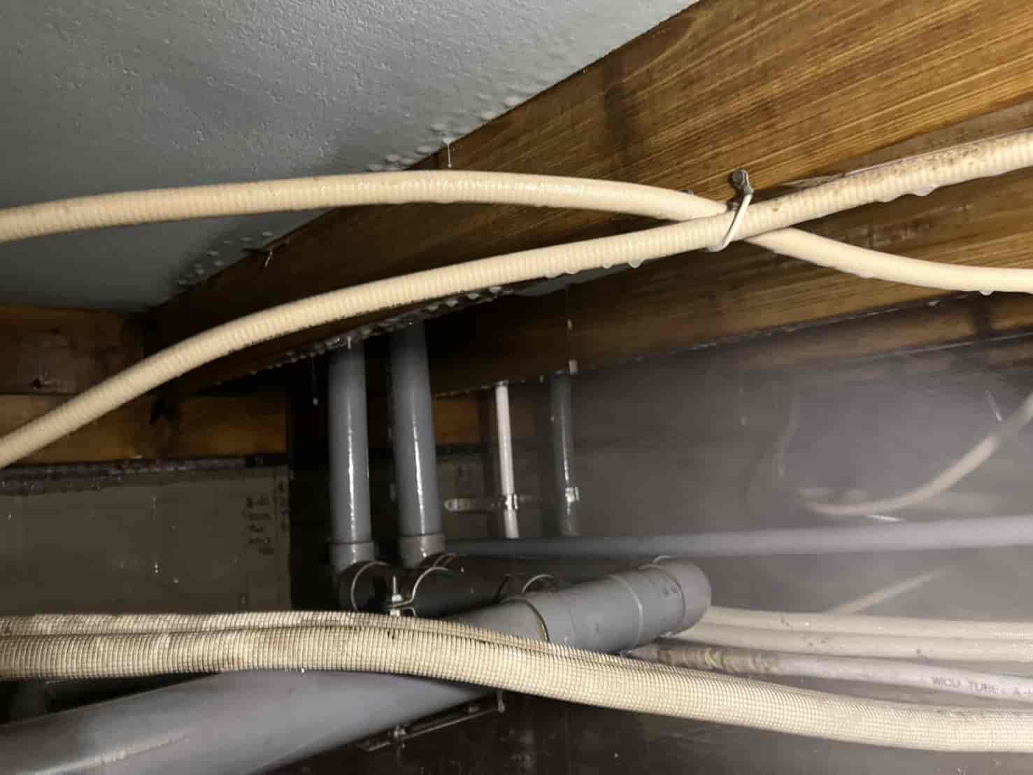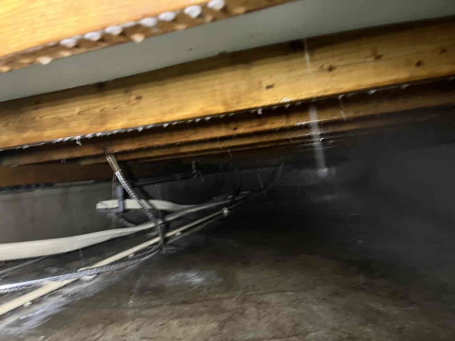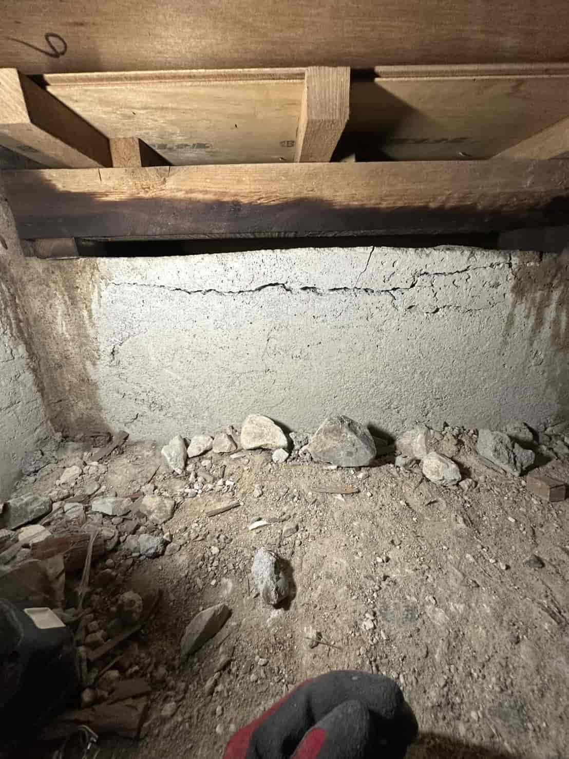 それでも、わずかな隙間から別の区画を覗いたところ、しっかりとした「蟻道(ぎどう)」が確認できました。蟻道とは、シロアリが地中や床下から木材へ侵入するために作るトンネル状の通路で、これが存在するということは、すでにシロアリが建物内部に侵入し被害を拡大させている証拠です。目に見える範囲だけでなく、基礎内部や壁際にまで被害が及んでいると判断しました。