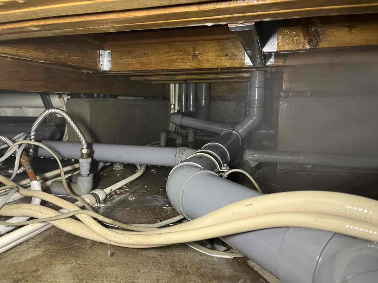 株式会社アビリティでは、現場ごとに最適な施工方法を選択します。今回の建物のように床下が区切られている場合、通常の散布では薬剤が全体に行き渡らないため、特別な作業が必要です。