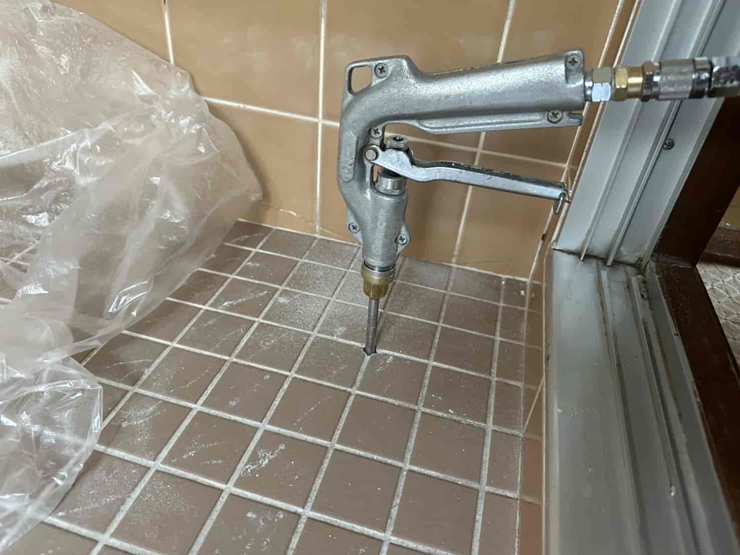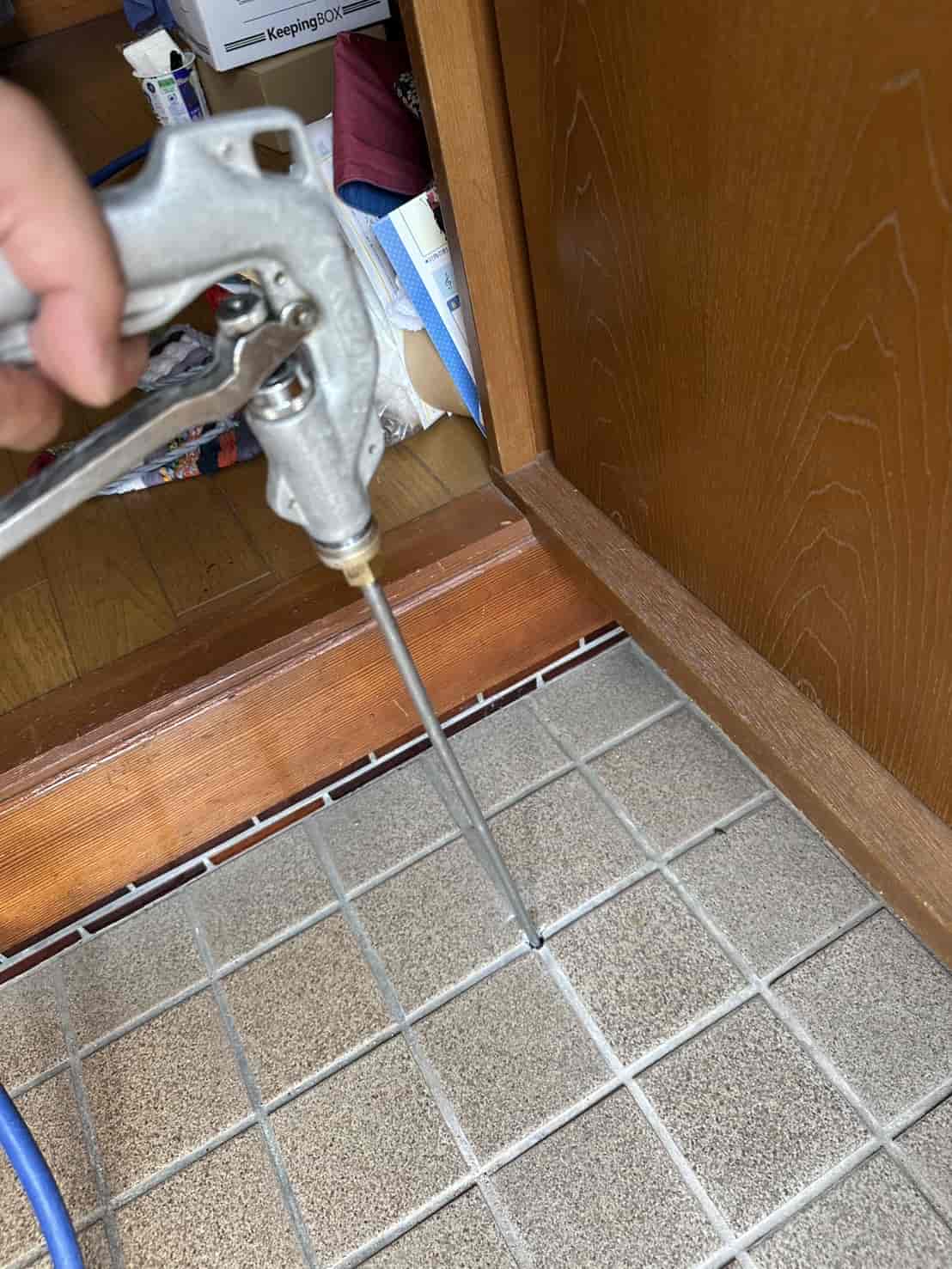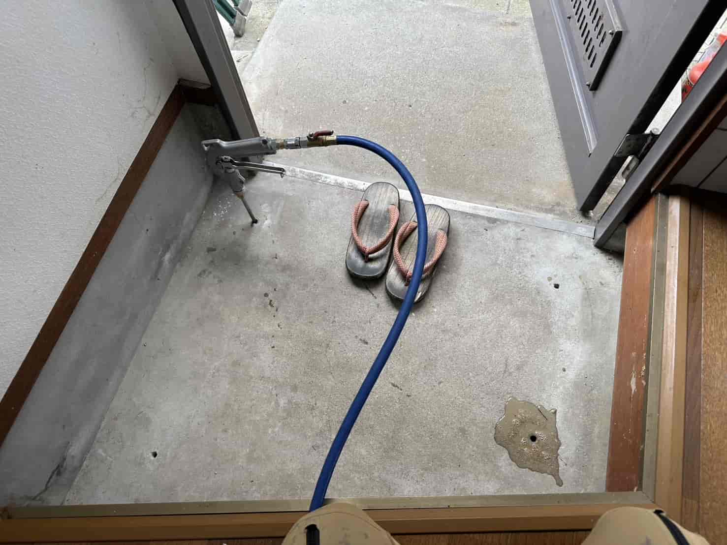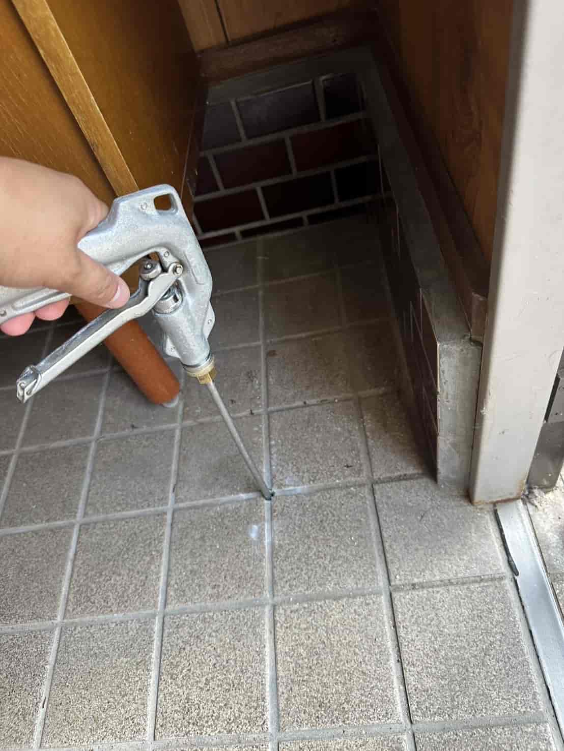 お風呂・トイレ・玄関といった床下から直接アクセスできない部分については、タイルや土間コンクリートに小さな穴を開け、そこから薬剤を注入しました。これにより床下から施工できない部分にも薬剤を行き渡らせることができ、建物全体をしっかり保護しました。
