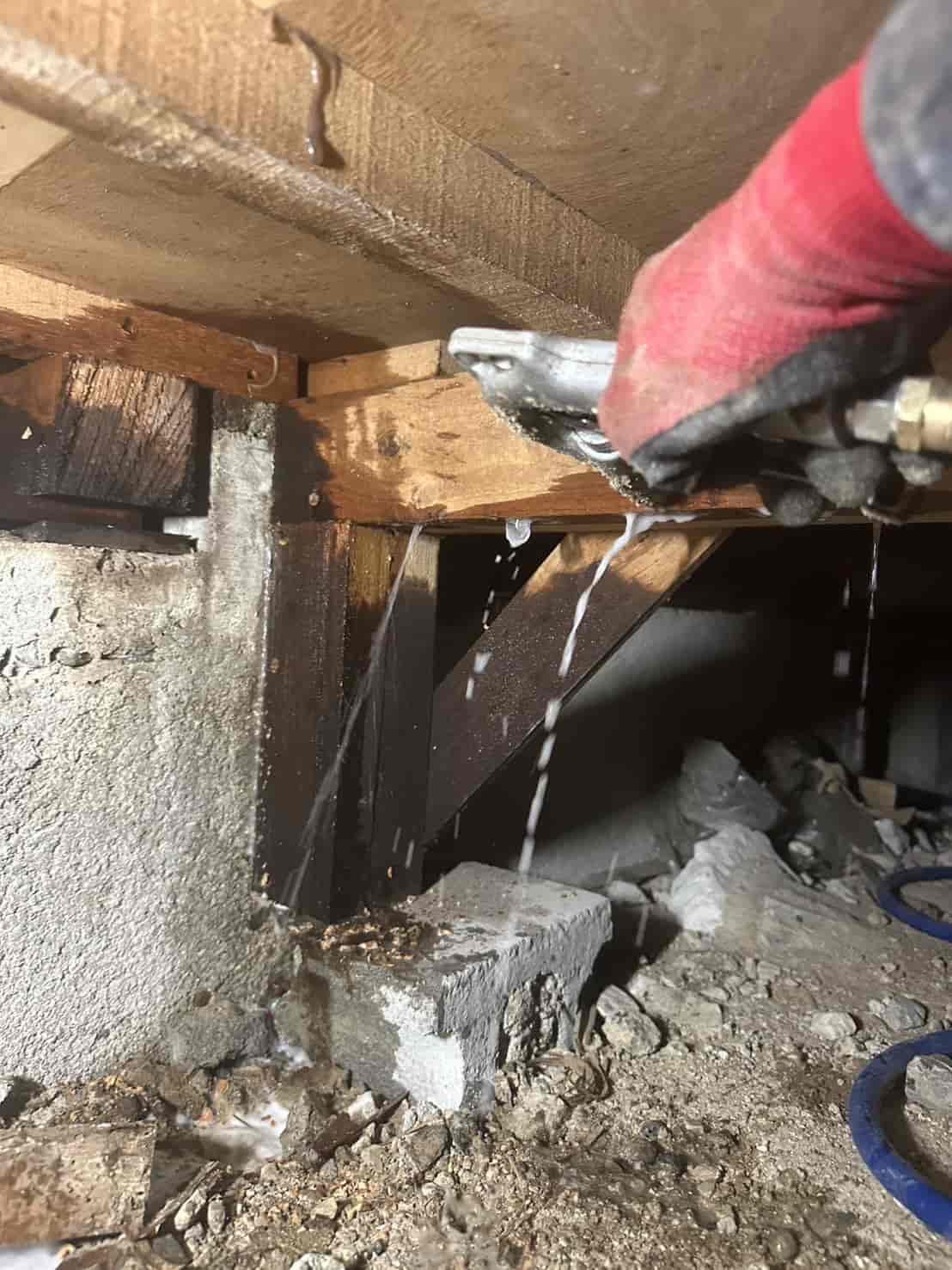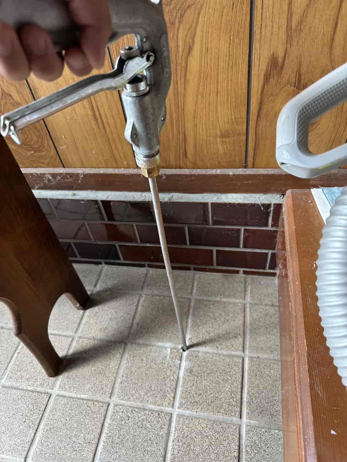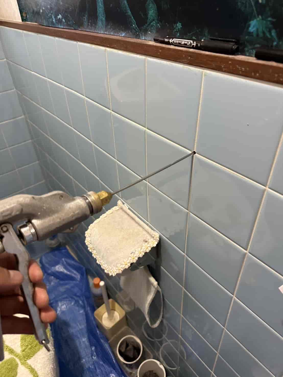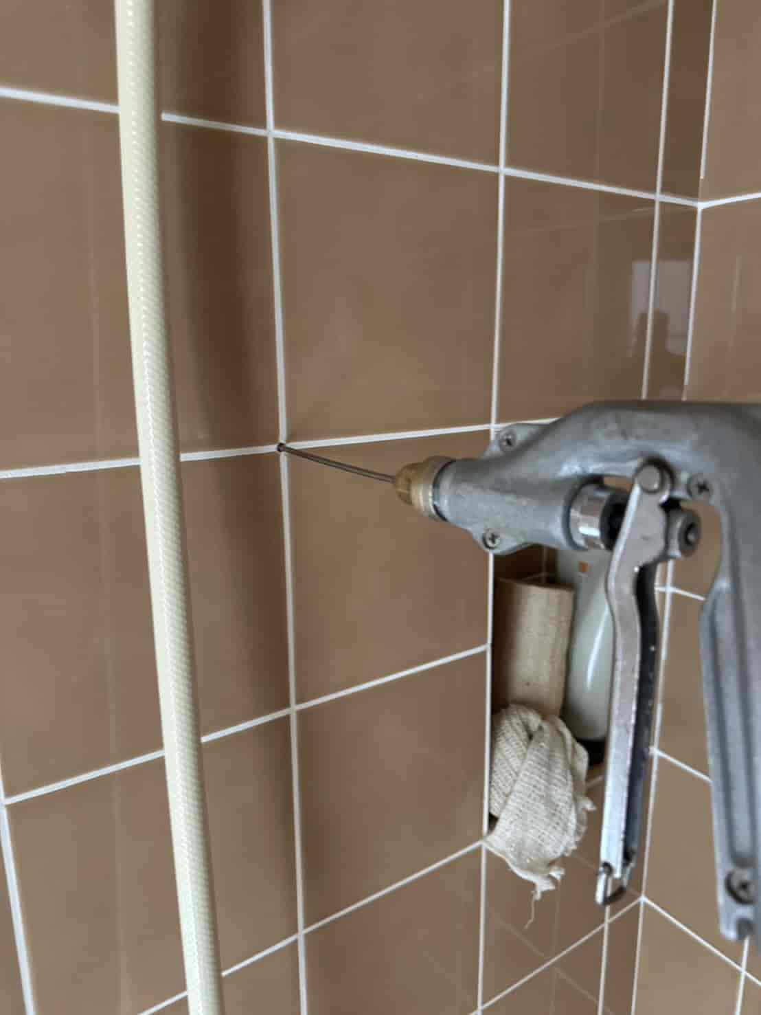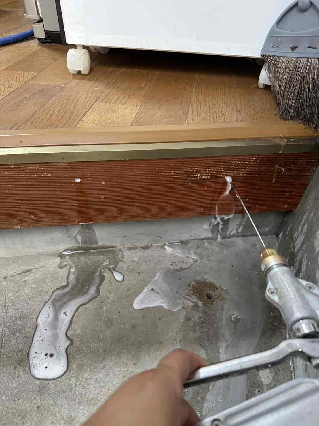 お風呂・トイレ・玄関といった床下から直接アクセスできない部分については、タイルや土間コンクリートに小さな穴を開け、そこから薬剤を注入しました。これにより床下から施工できない部分にも薬剤を行き渡らせることができ、建物全体をしっかり保護しました。