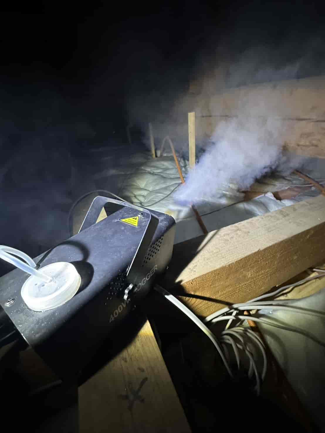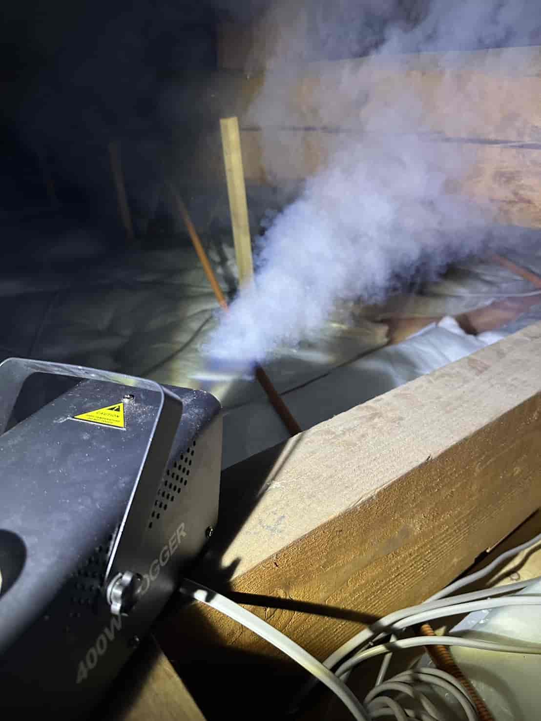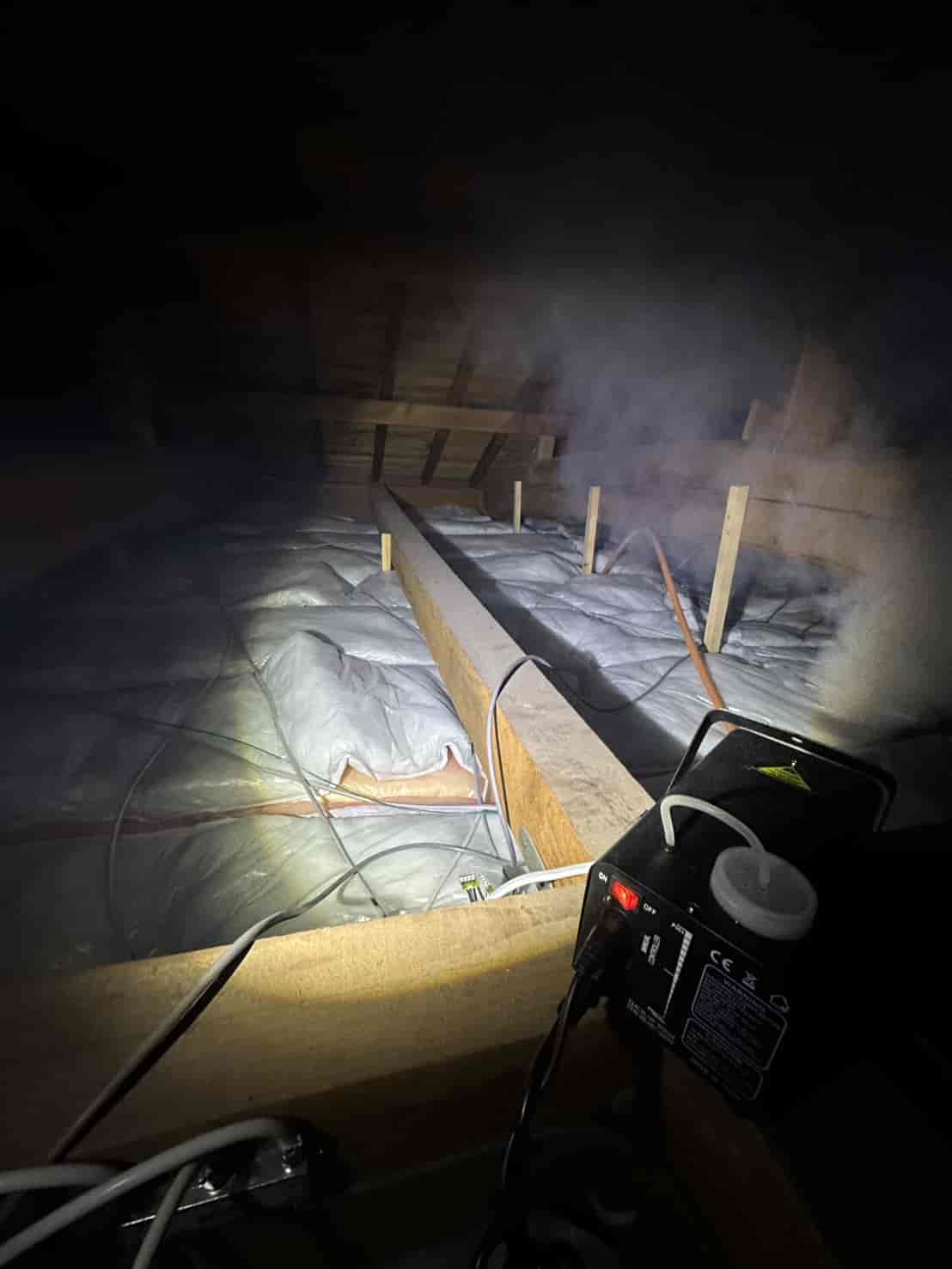 まず屋根裏全体に燻煙処理を行いました。