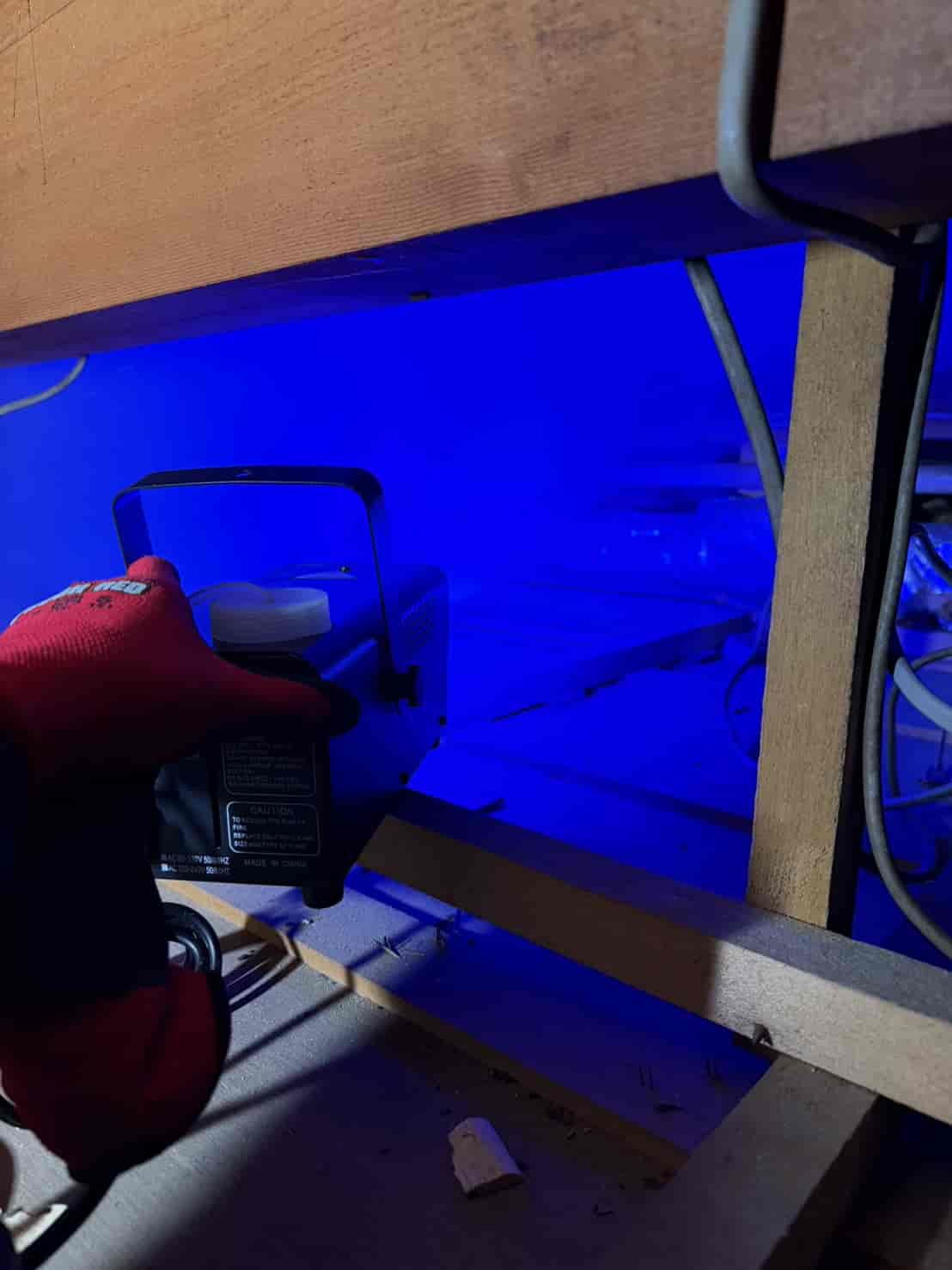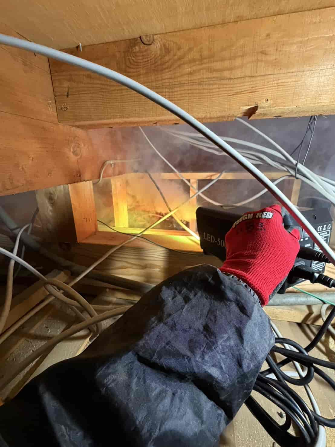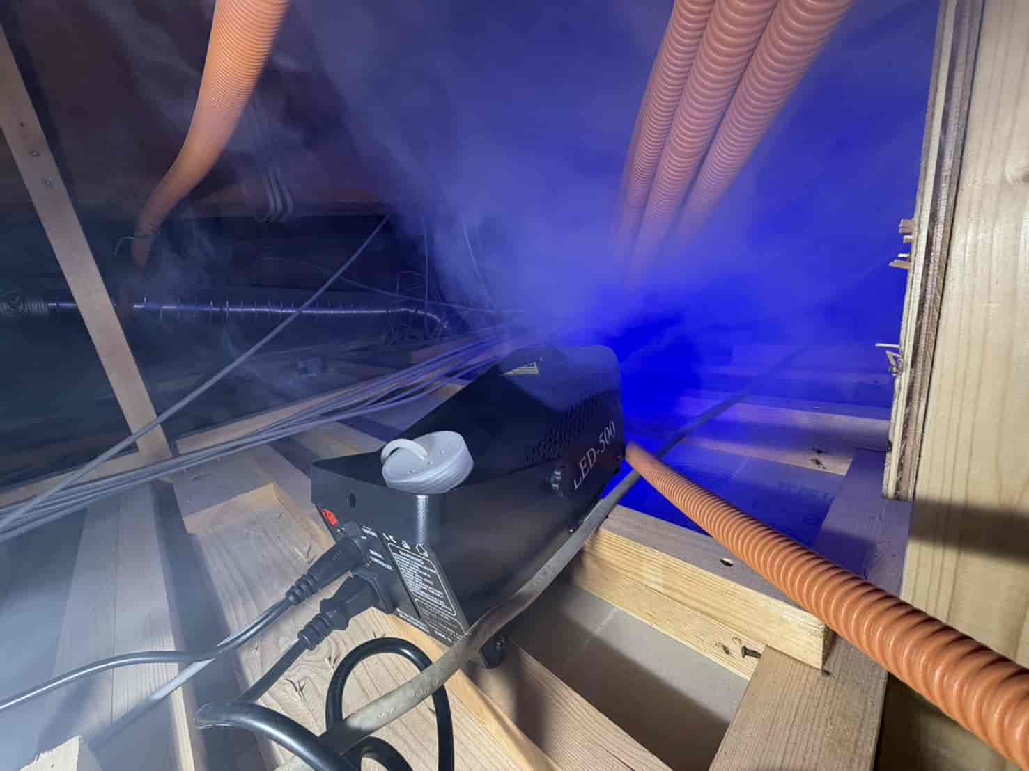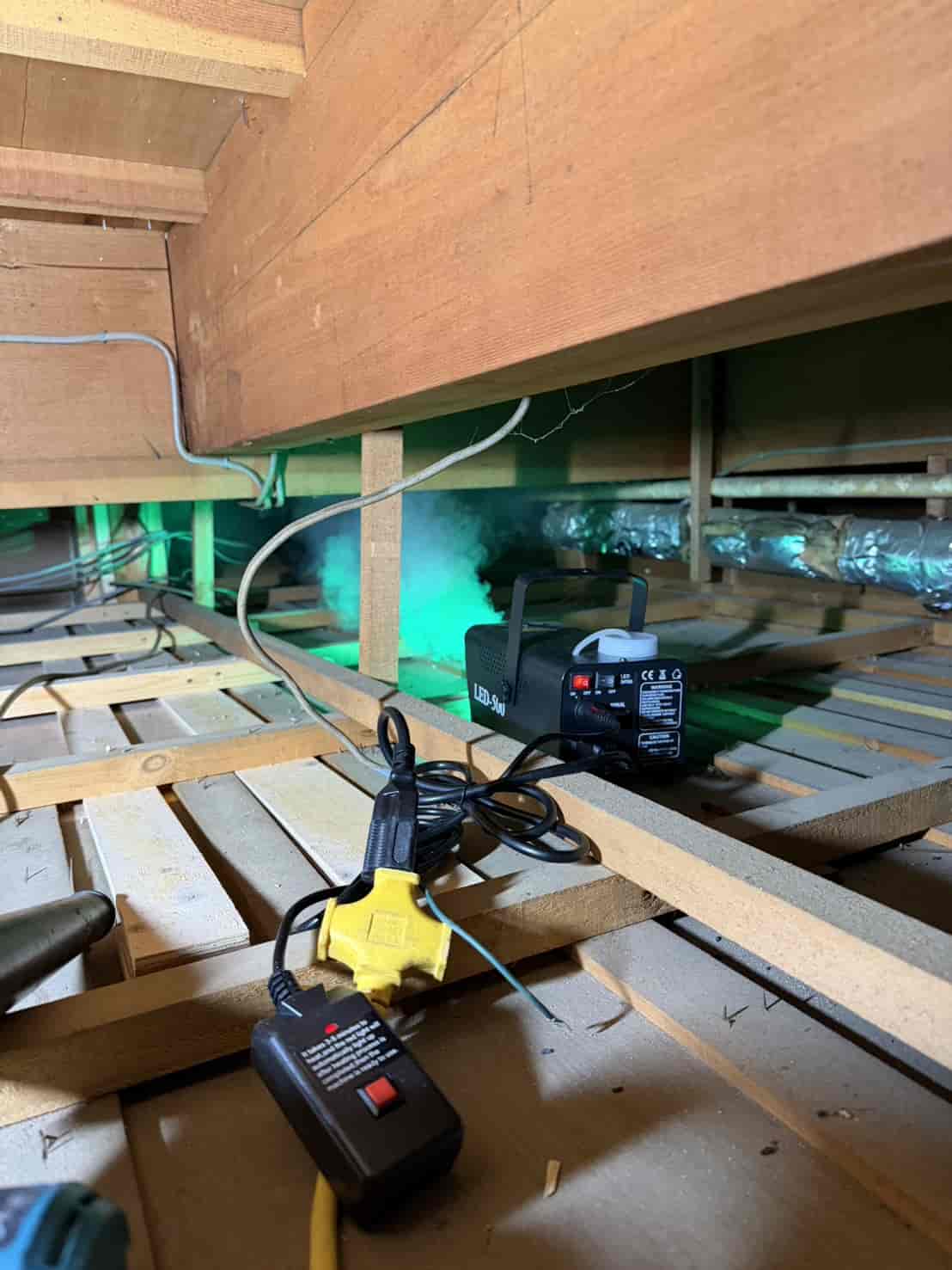 まず屋根裏全体に燻煙処理を行いました。
