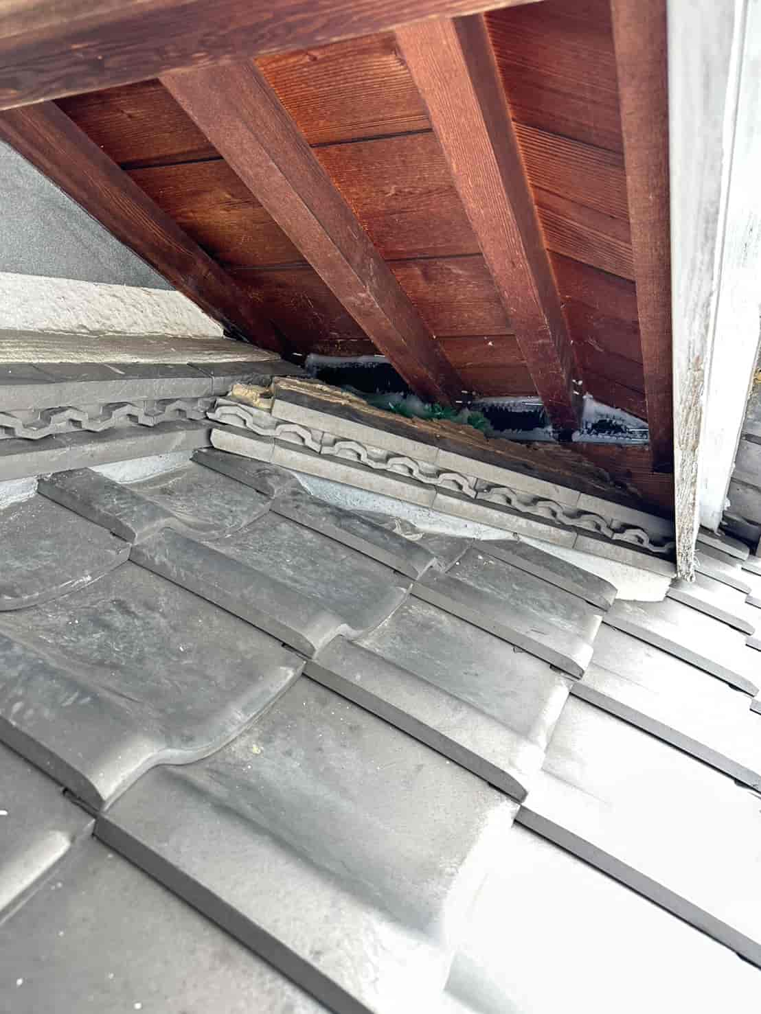特に屋根の取り合い部分や母屋周辺のわずかな隙間でもこじ開けて侵入します。