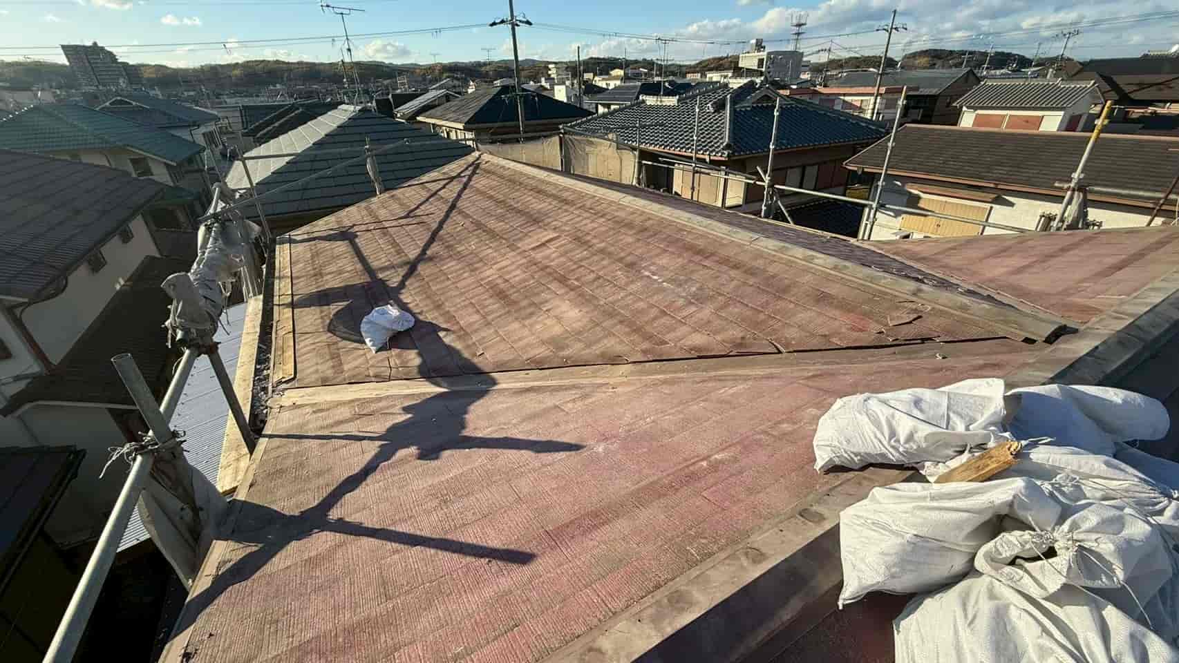 工事では、既存の土をすべて撤去し、新たに木下地を組み直し、防水のためルーフィング(防水シート)を張ったうえで、桟木(さんぎ)を新設しています。それにより、瓦の固定力と防水性を大幅に向上させました。
