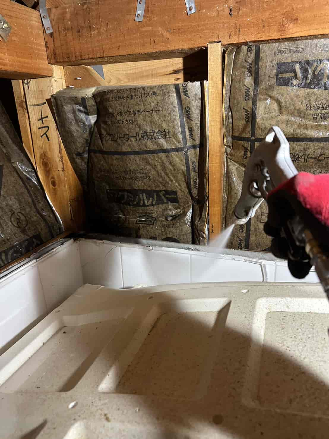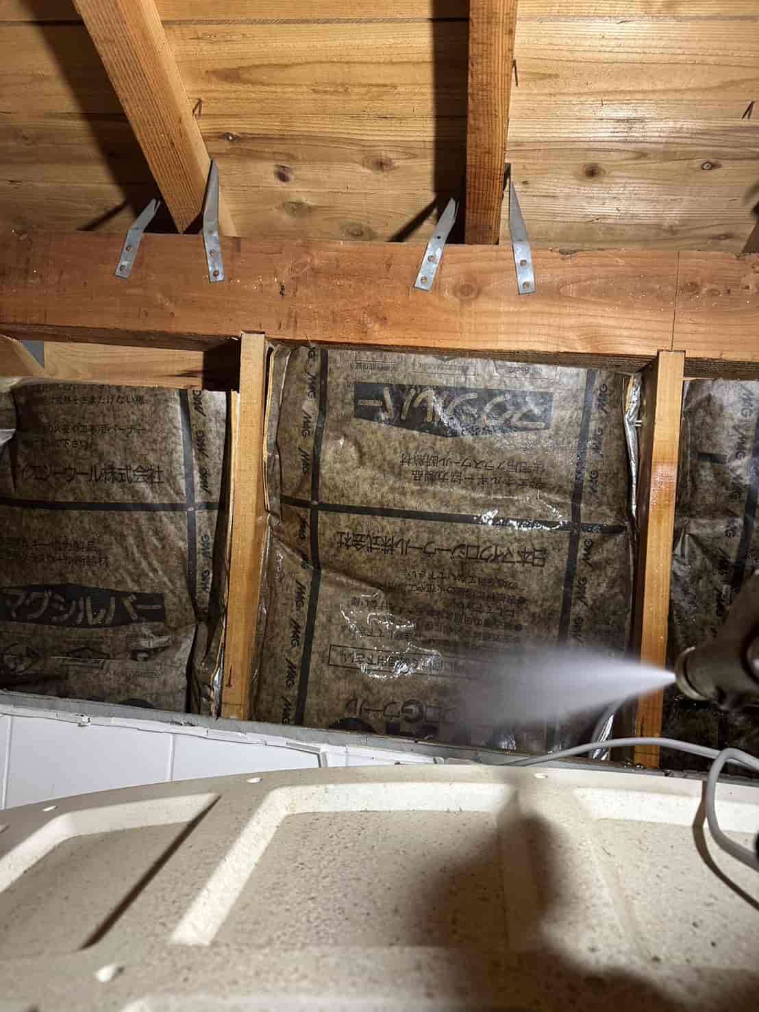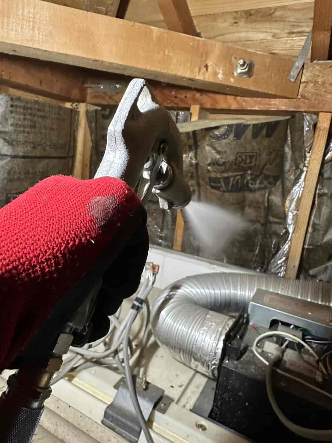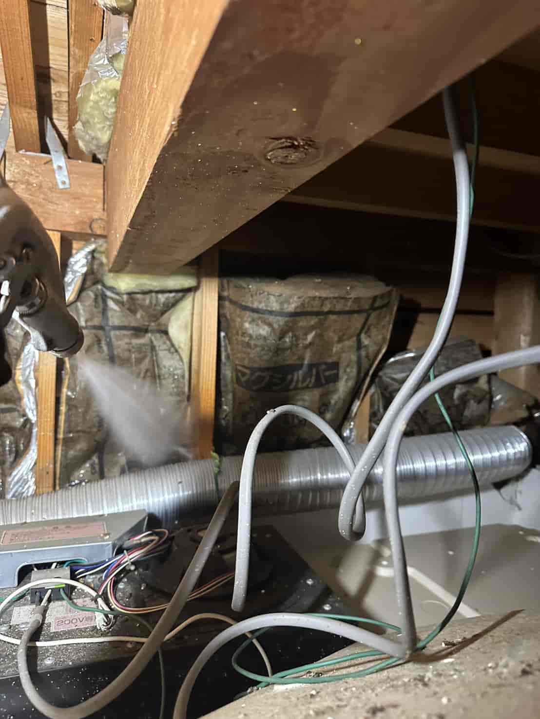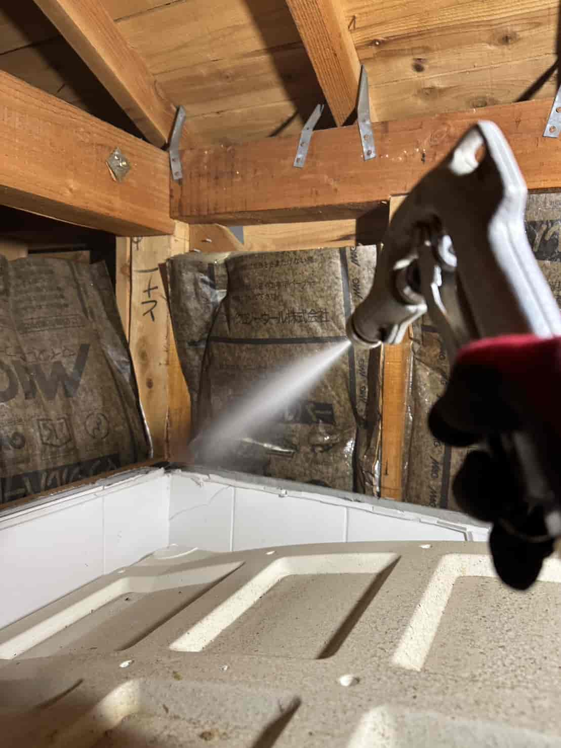 実際に確認すると、増築部分の一部は床下からの進入が困難な構造となっており、そのままでは十分な消毒処理が行えない状態でした。