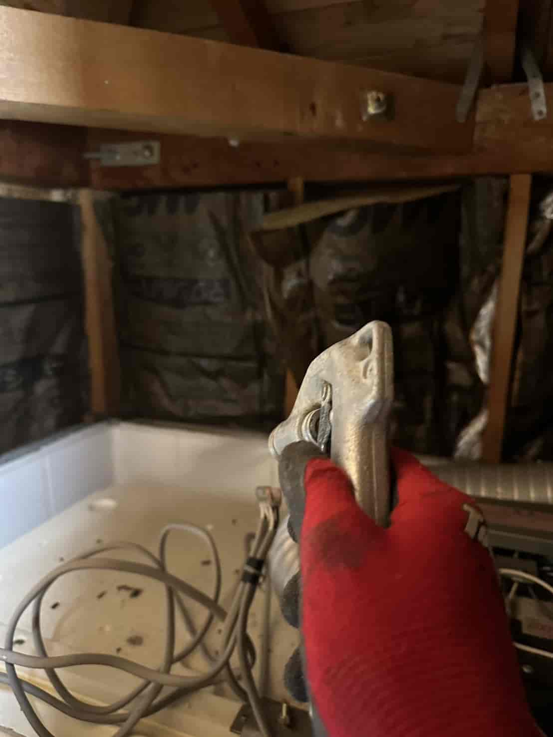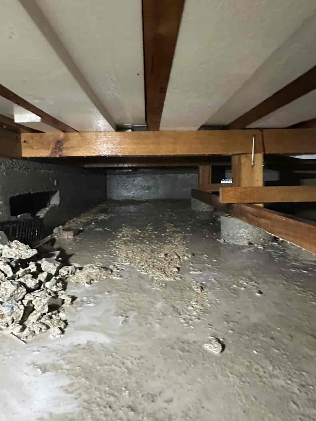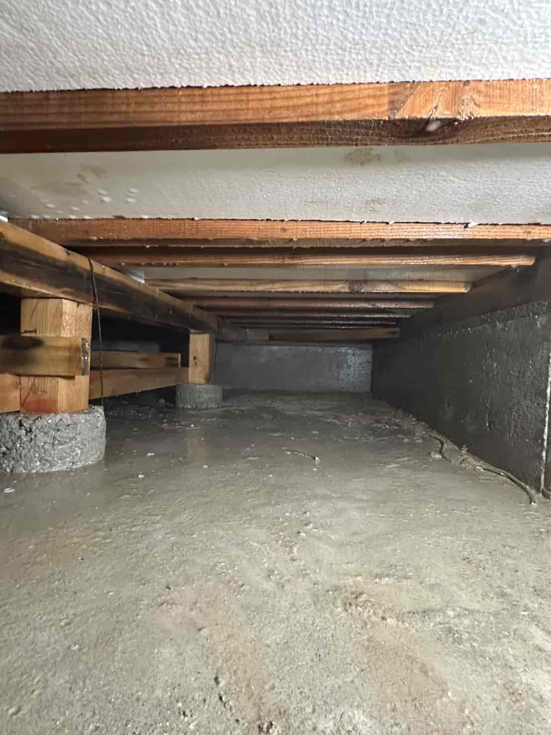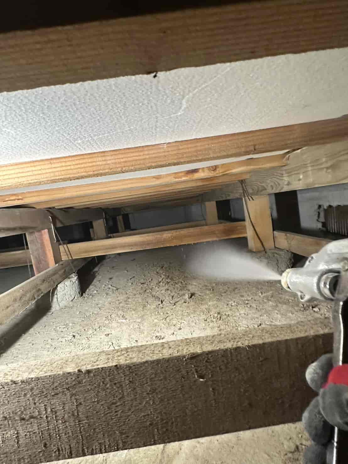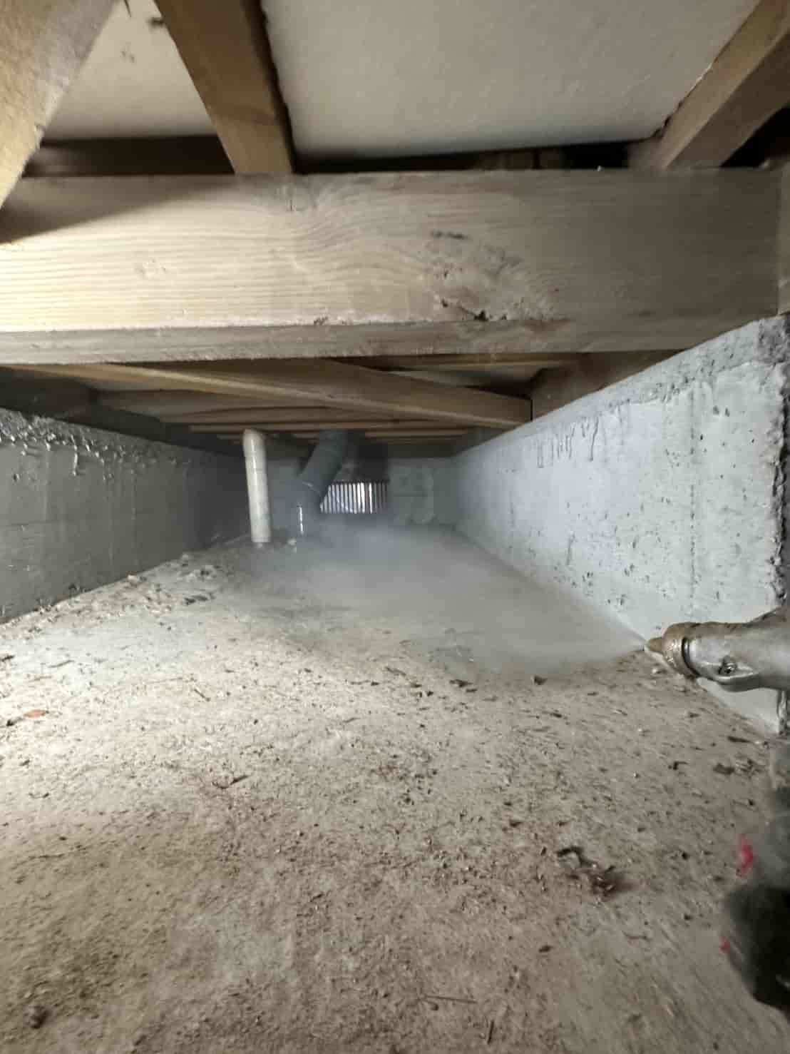 実際に確認すると、増築部分の一部は床下からの進入が困難な構造となっており、そのままでは十分な消毒処理が行えない状態でした。