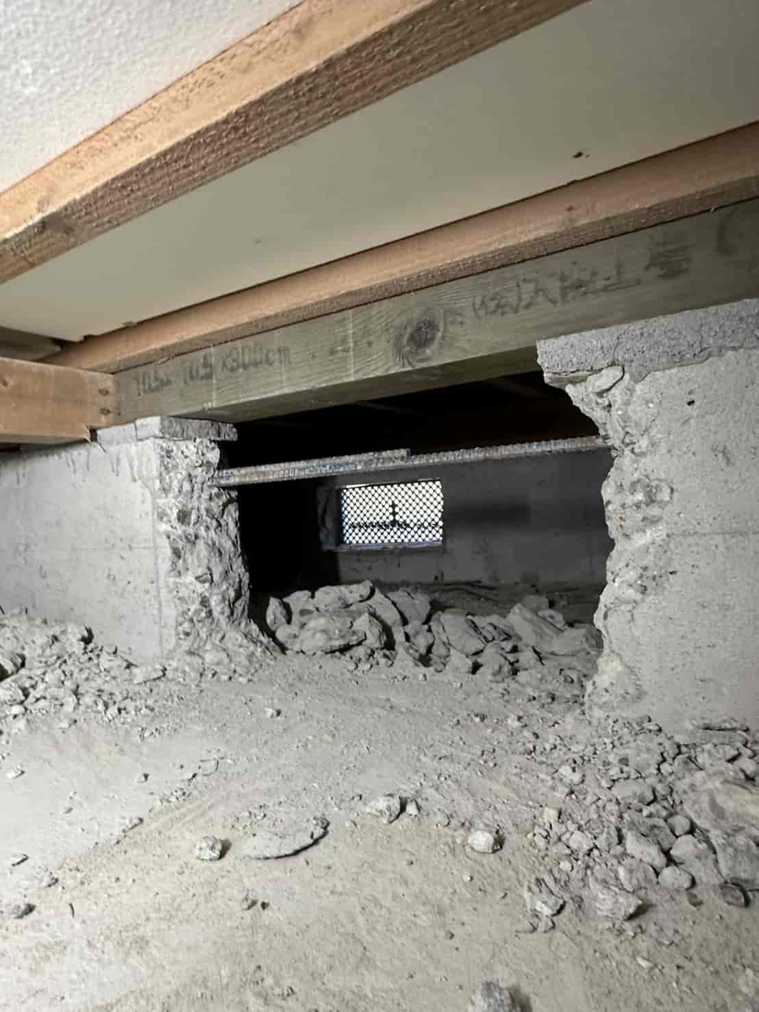 【対応】白アリ防除工事の保証満了に伴う再施工のご依頼を受け、現地調査を実施。床下全体を確認したところ増築部があり、通常施工が困難な箇所についてはハツリ作業を行い、進入可能な状態を確保しました。その後、床下全体にバリア工法による予防消毒を実施。あわせて玄関のスラブタイル部には穿孔注入処理を行い、建物全体の白アリ侵入リスクを遮断しました。