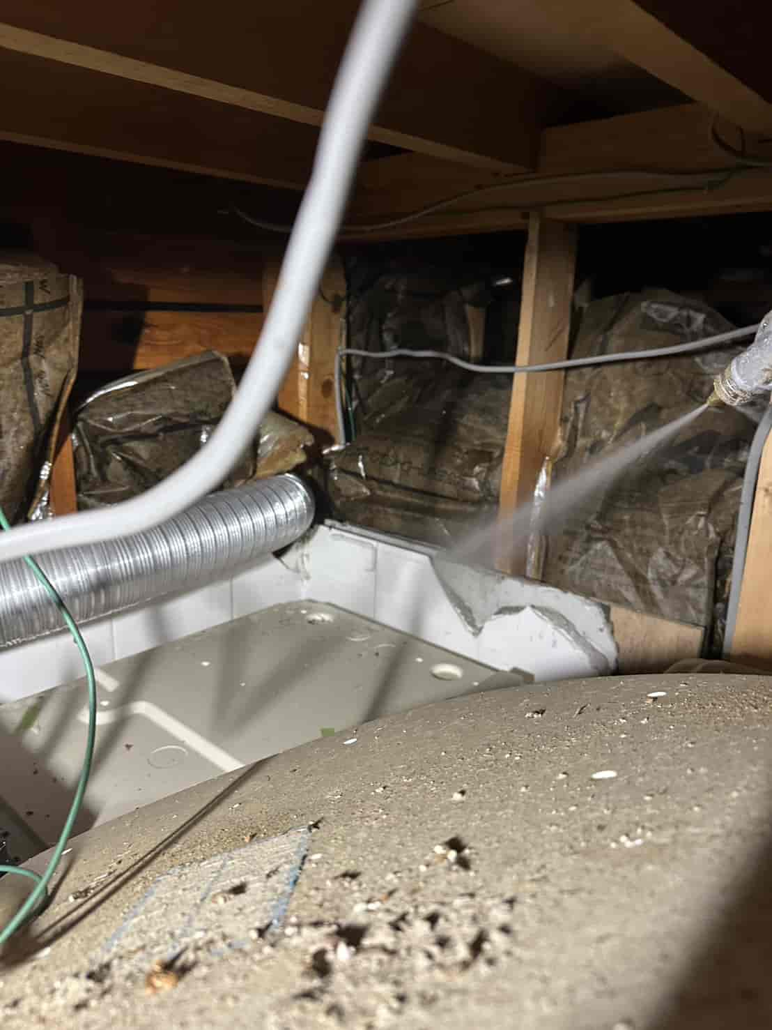 そこで今回は、必要最小限のハツリ作業(コンクリートの一部解体)を行い、床下全体にしっかりと入れる状態を確保したうえで、白アリ予防消毒を実施しました。