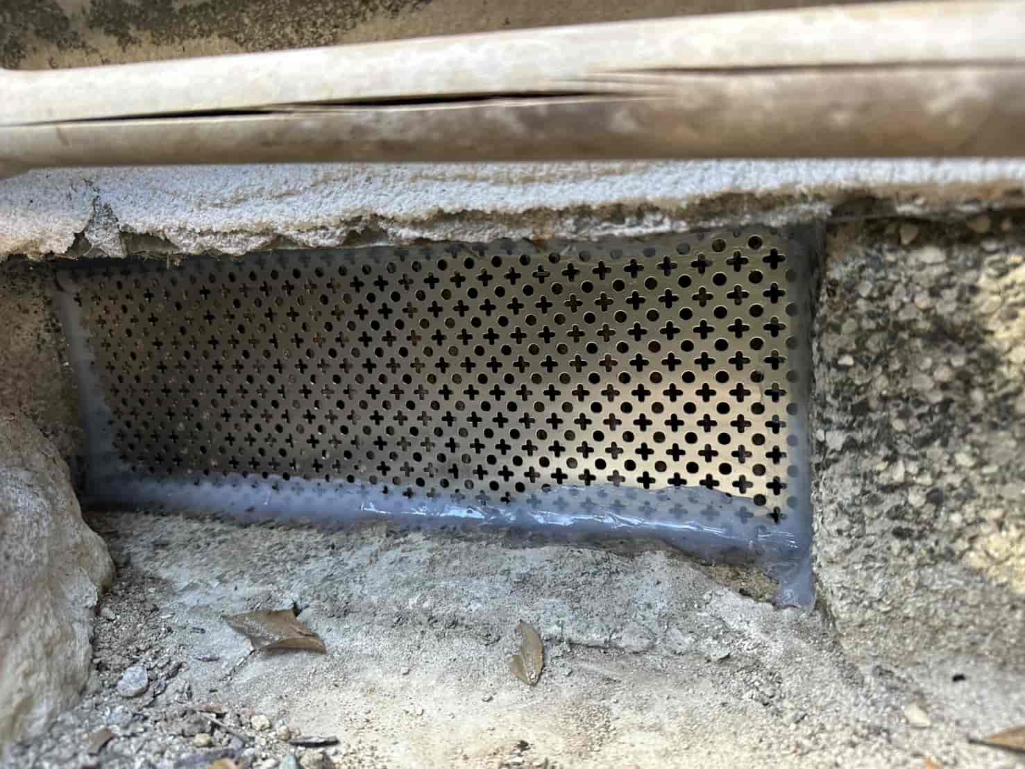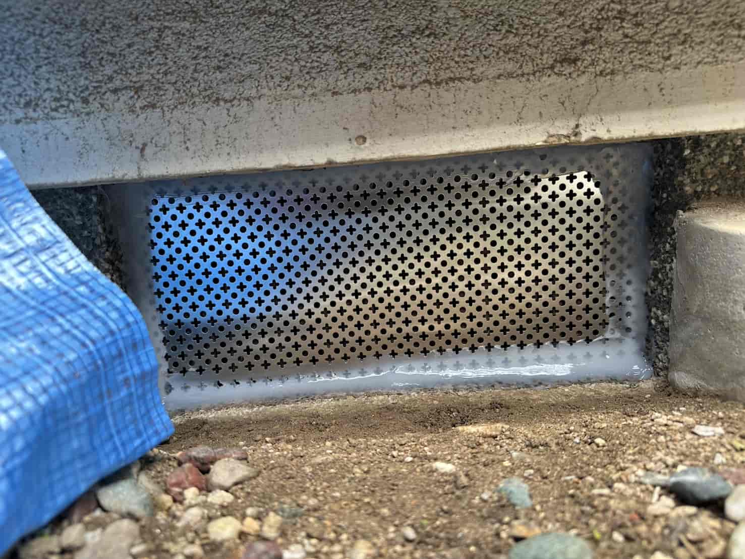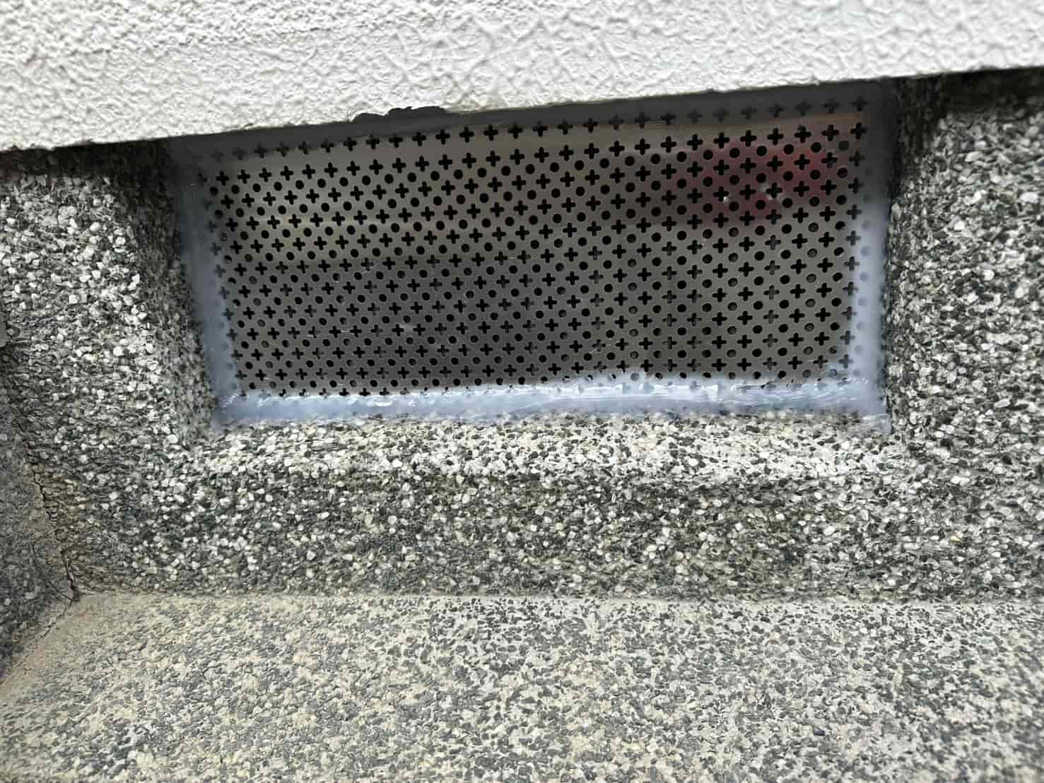 建物の構造を見ながら、害獣が好む通り道・潜り込みやすい隙間・基礎部分の穴などを金網・パンチングメタル・コーキング・モルタル等の組み合わせで確実に封鎖しました。再侵入されると被害が拡大するため、封鎖作業は最も重要な工程です。