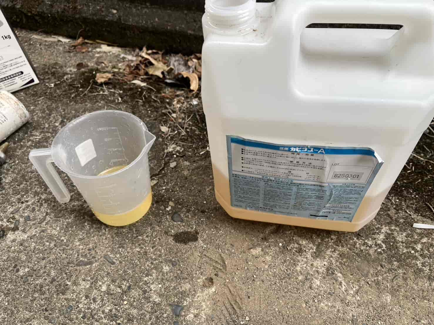 今回、最も重要だったのがこれです。増築による換気不足でカビが深刻だったため、これ以上の木材劣化を防ぐために専用の防腐・防カビ処理を施しました。
