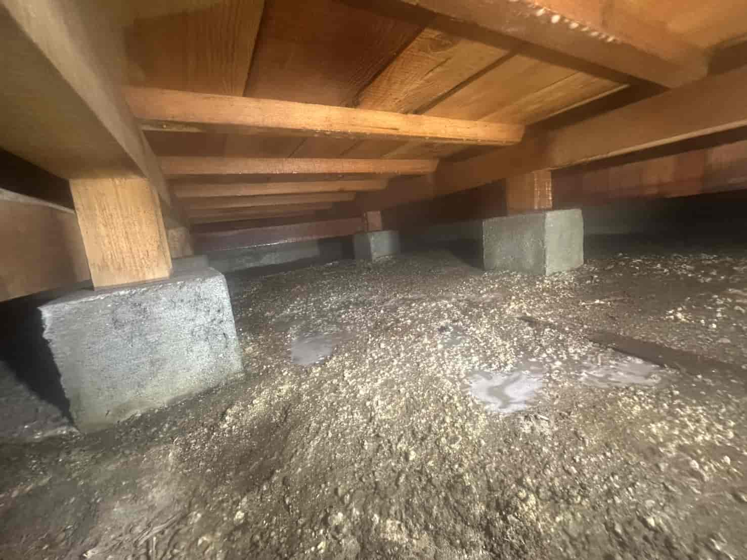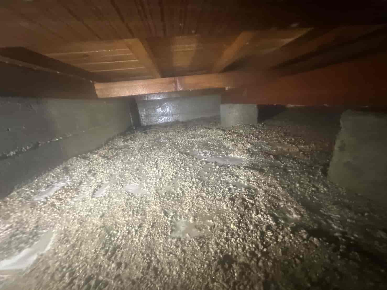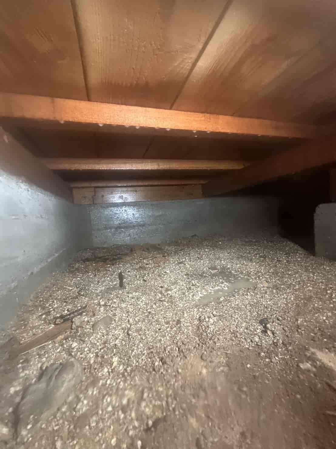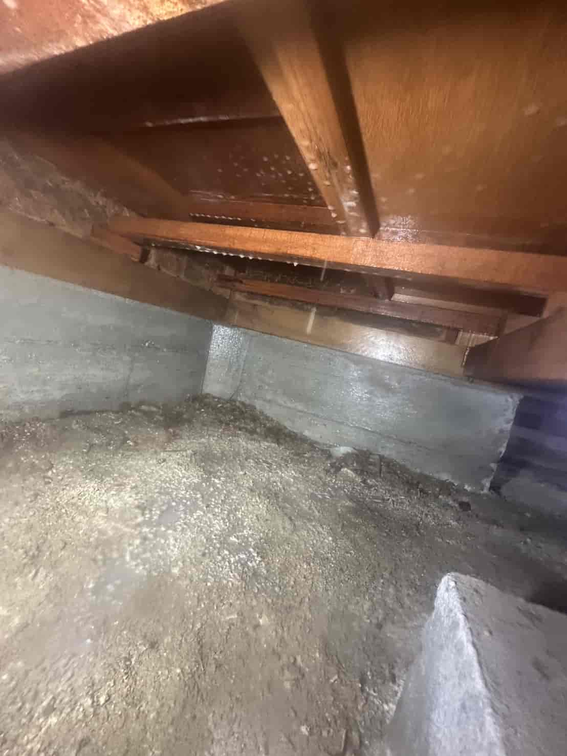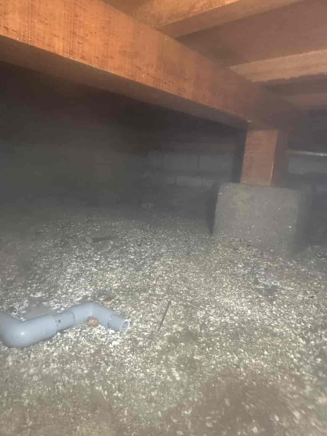 床下に進入し、土壌および木部に対して専用の防蟻薬剤を散布施工しました。