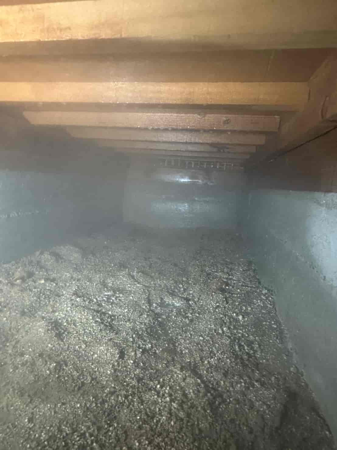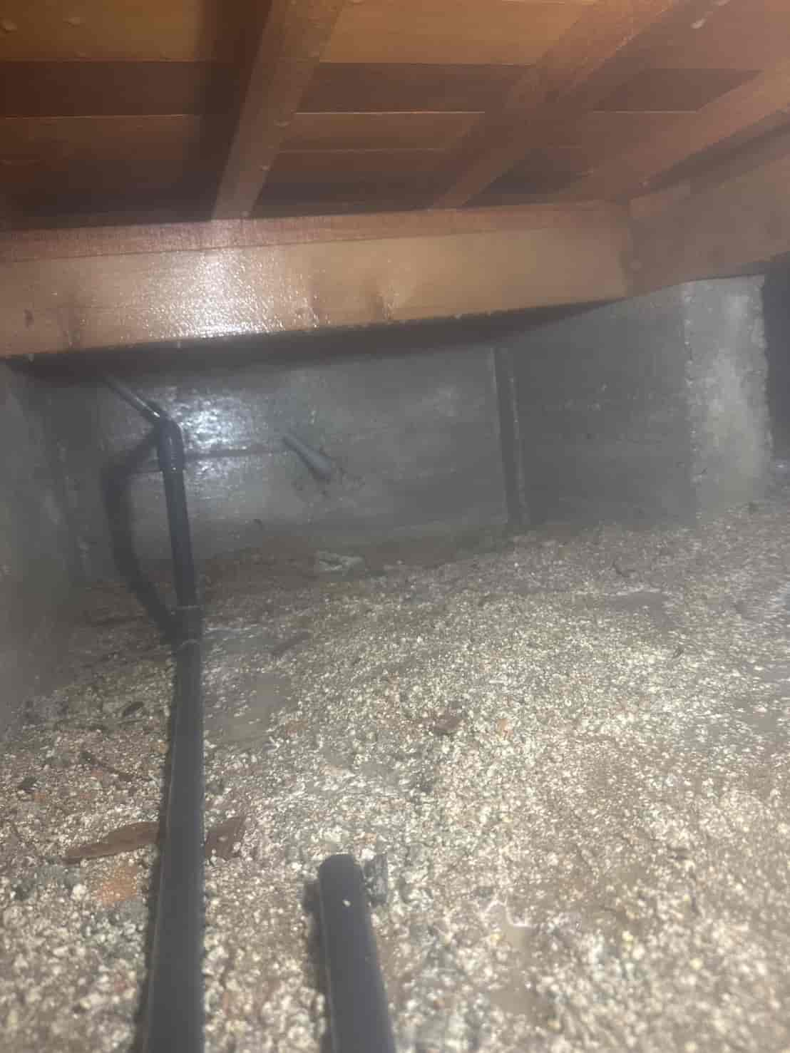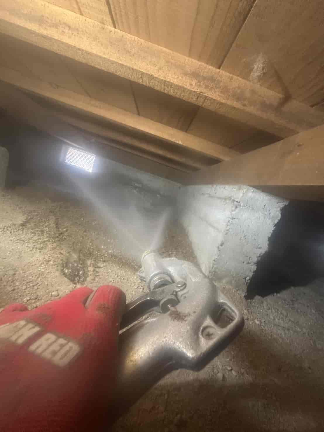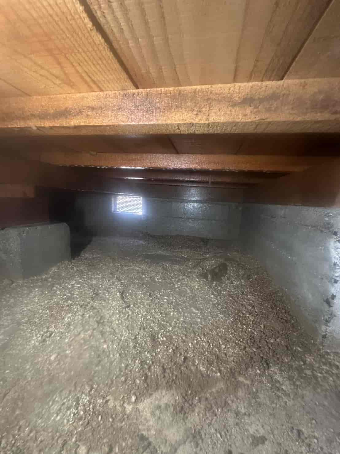 床下に進入し、土壌および木部に対して専用の防蟻薬剤を散布施工しました。
