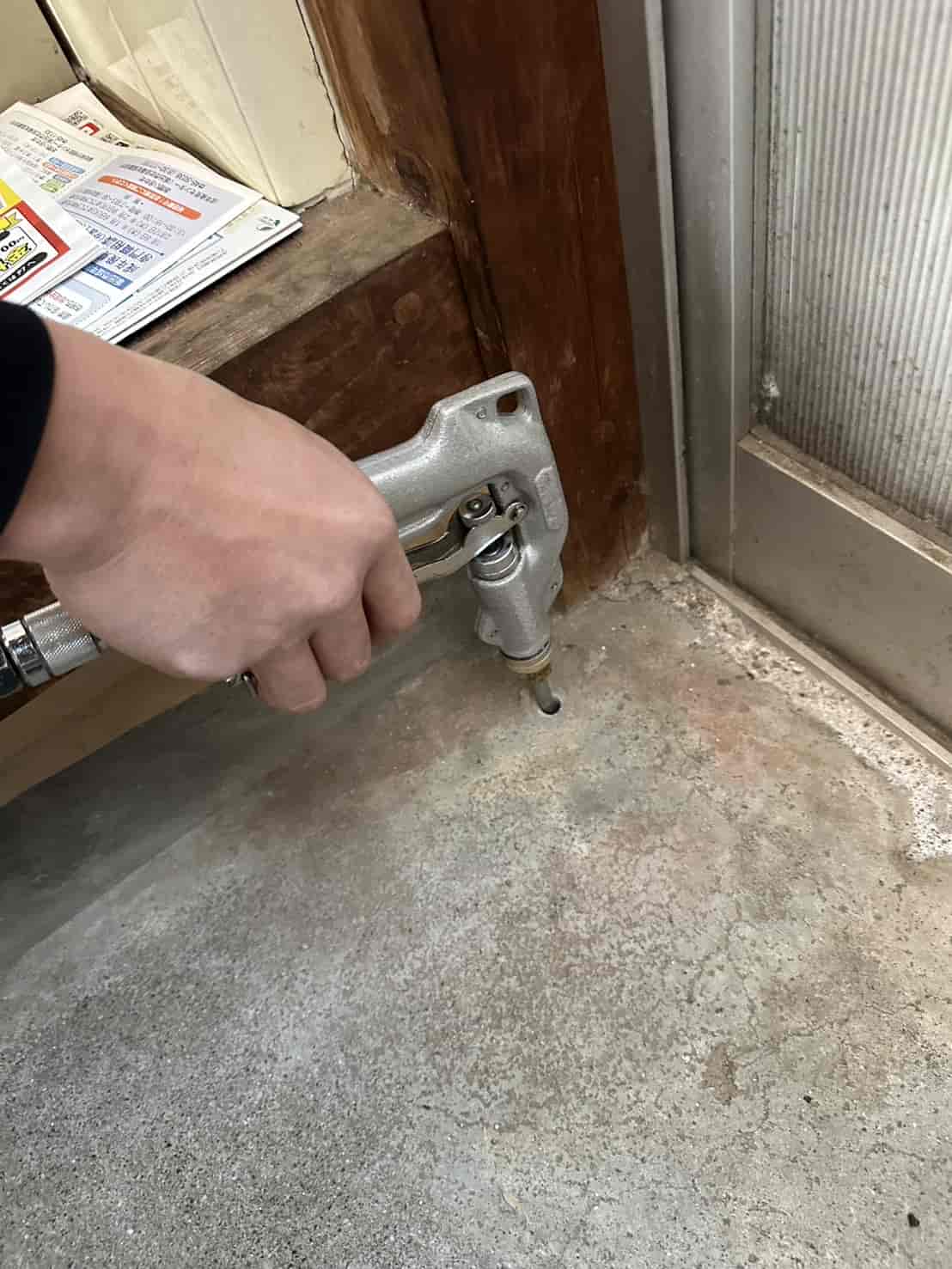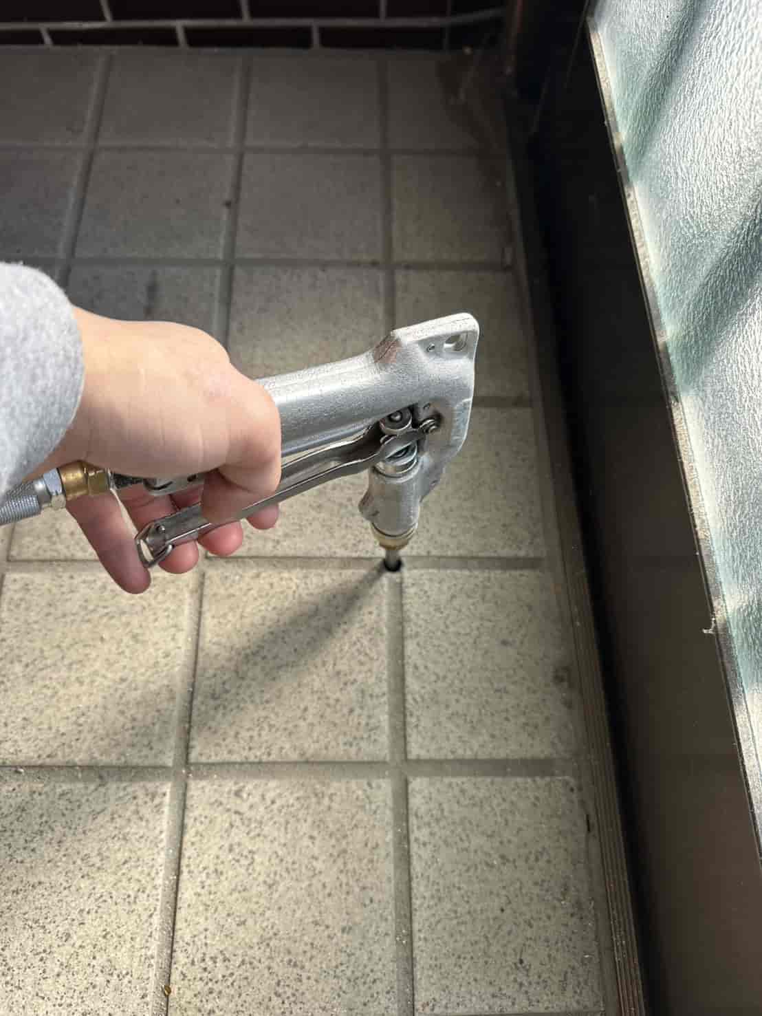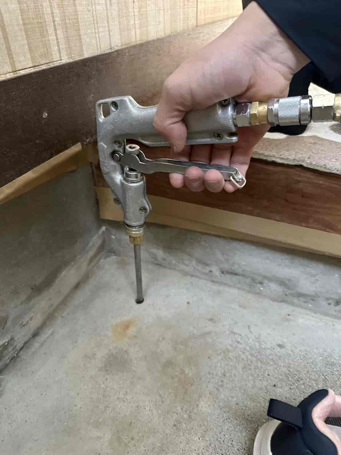 今回の工事で特に重要となるのが、土間スラブ部分への穿孔注入処理です。玄関や勝手口、トイレなどは、
