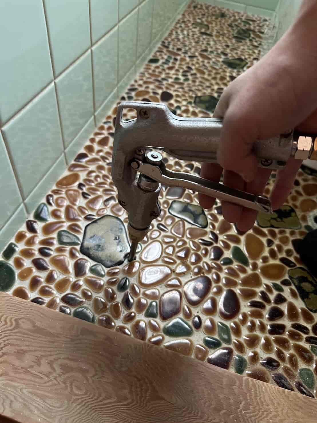 1.スラブタイルに専用ドリルで適切な間隔で穿孔