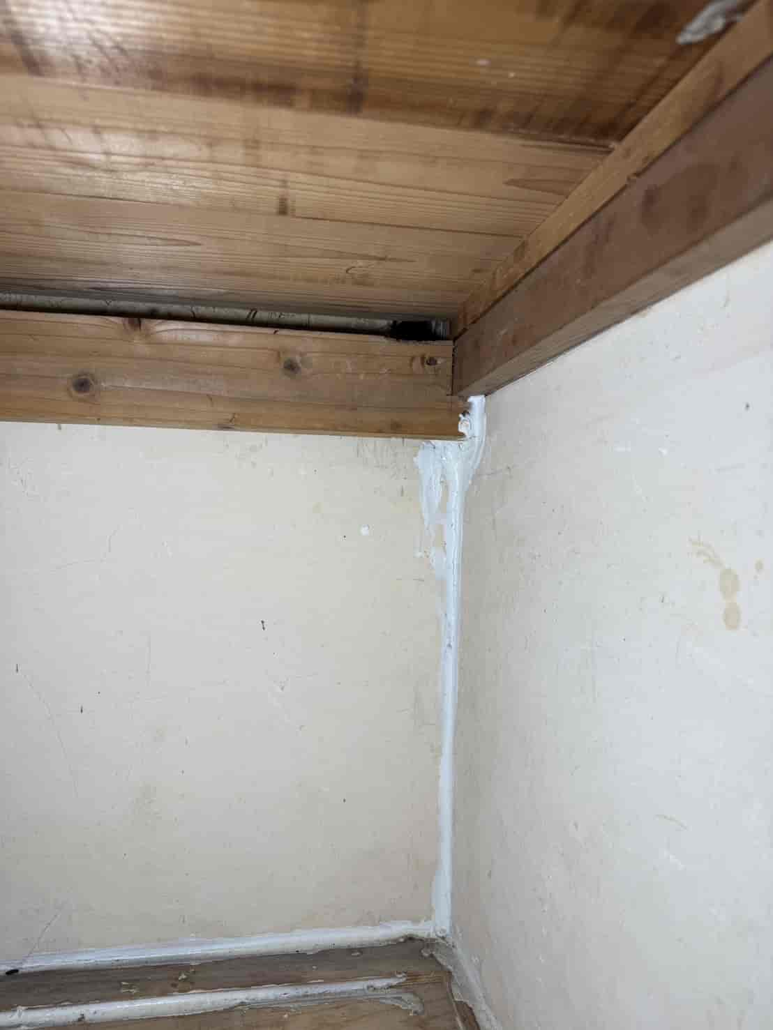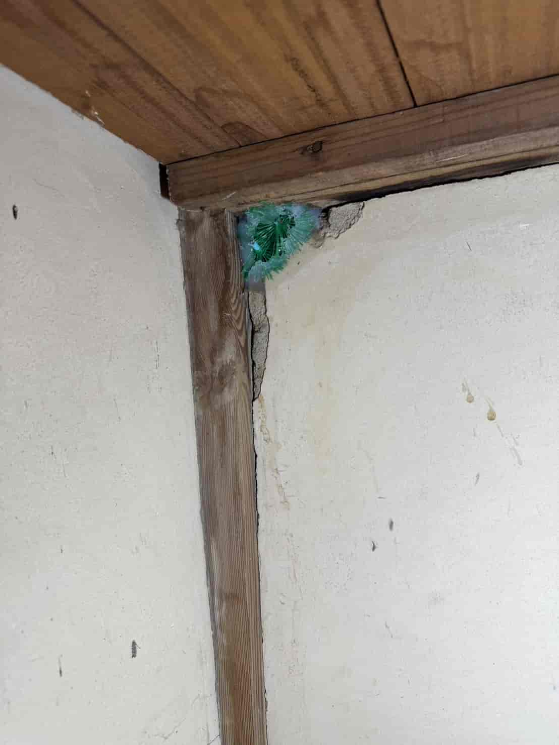 燻煙処理後は、外部・内部すべての侵入口となる隙間の穴塞ぎ作業を行いました。