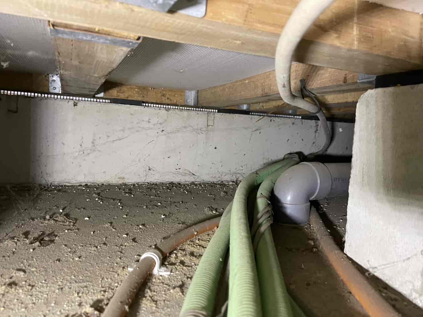床下は比較的乾燥しており、換気状況も良好でしたが、水回り付近の木部には多少の湿気が見られました。