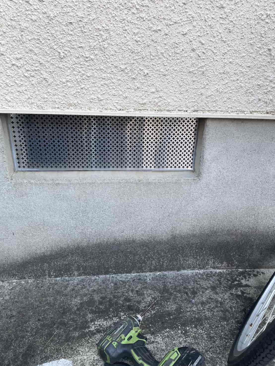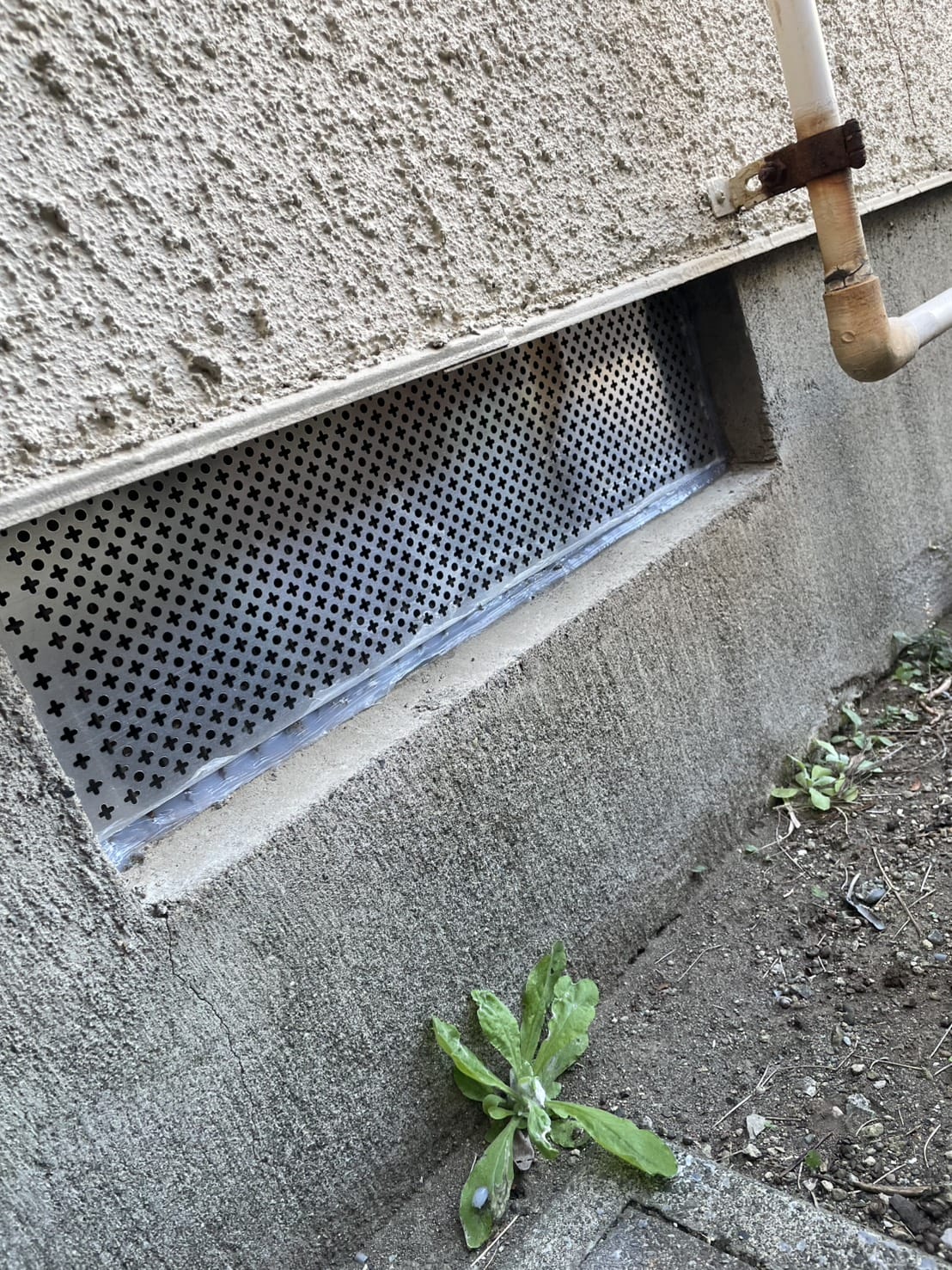 【対応】茅ヶ崎市に在住の方からご連絡いただき、内容をヒアリングしてみたところ、自宅でネズミを見て、ご自身で捕獲したとのことでした。再度発生しないように対策をお願いしたいとのご依頼をいただきました。外部基礎通気口の鉄柵付近にネズミのフンを発見したため、通気口全部に対策を施し、室内に出ている可能性のある箇所にも対策を施しました。