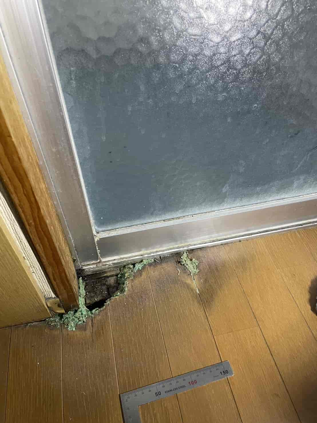 基礎通気口すべてに防鼠処理を実施。わずかな隙間でも侵入されるため、強度の高い金属メッシュでしっかりと補強しました。室内に続く可能性のある床下・配管まわりの隙間を封鎖。外から入れなくするだけでなく、もし床下に潜んでいた場合でも室内へ上がれないよう二重で対策。フンの位置から侵入経路を推定し、関連箇所を重点チェック。痕跡はネズミが通った“ルートの証拠”になるため、再発防止に欠かせません。