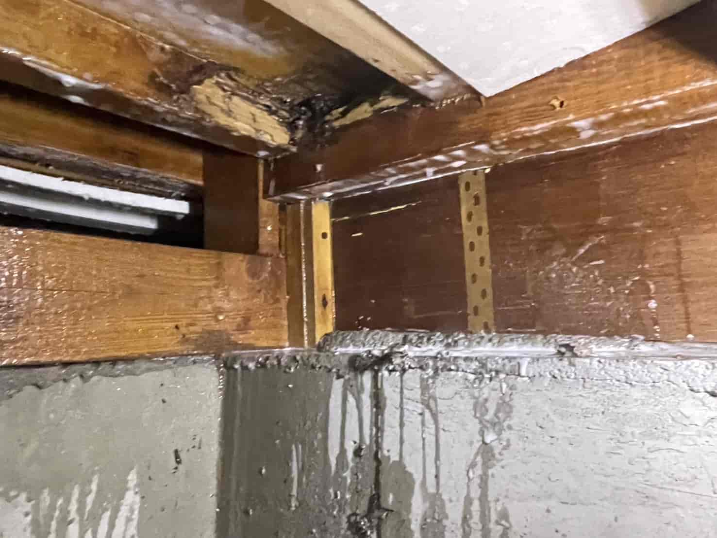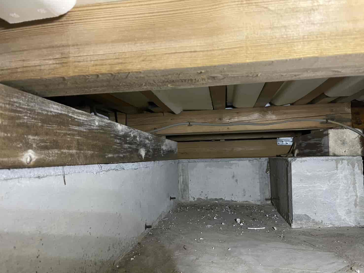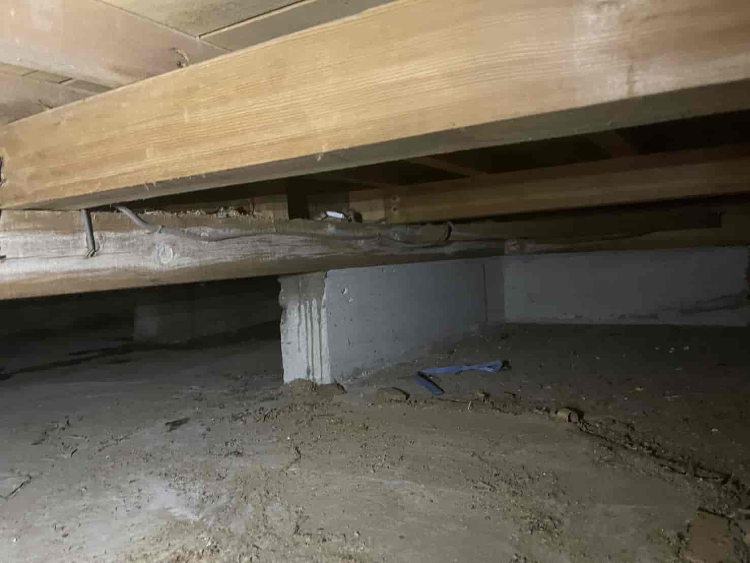 さらに、広縁下の根太には小規模ながらカビの発生が見られました。このカビは、シロアリ被害とセットで見られることが多く、床下の湿度が高い環境にあるサインです。特に葉山地域は海風の影響による湿気がこもりやすい気候特性を持つため、シロアリにとって活動しやすい住宅環境が自然に形成されやすい点に注意が必要です。