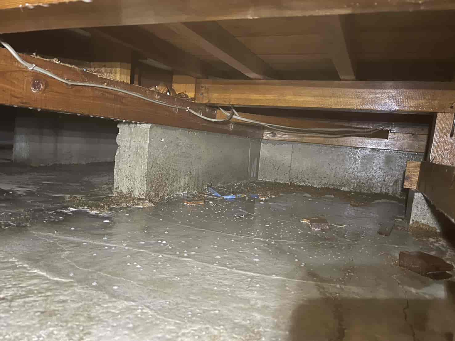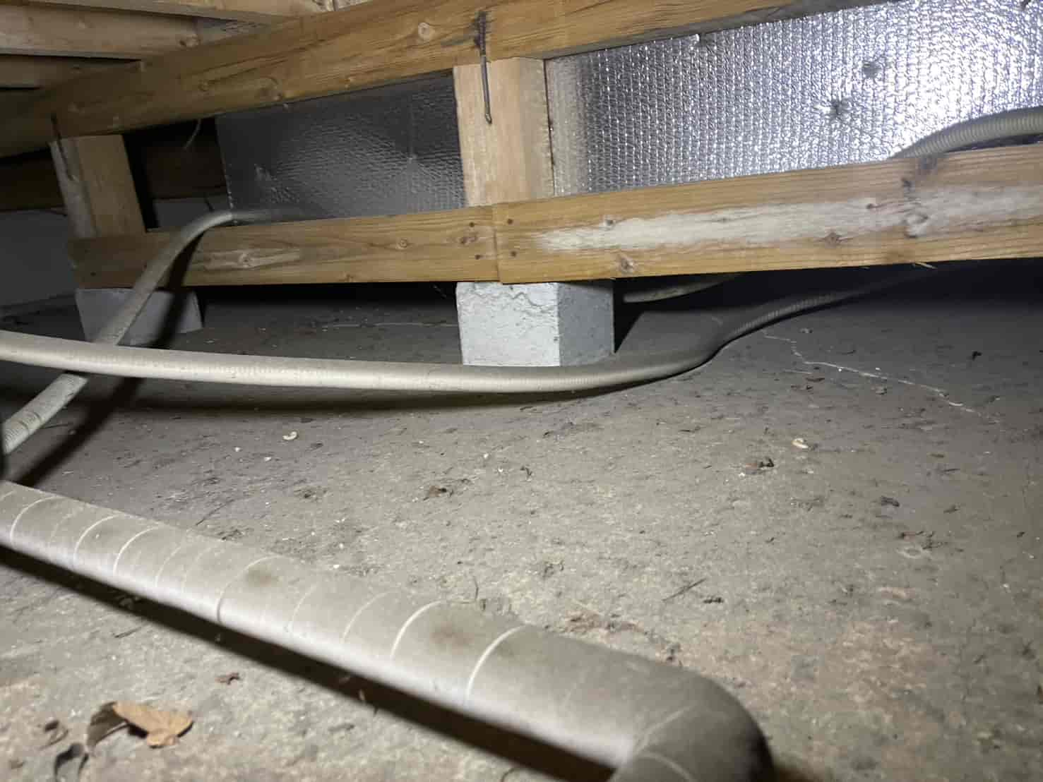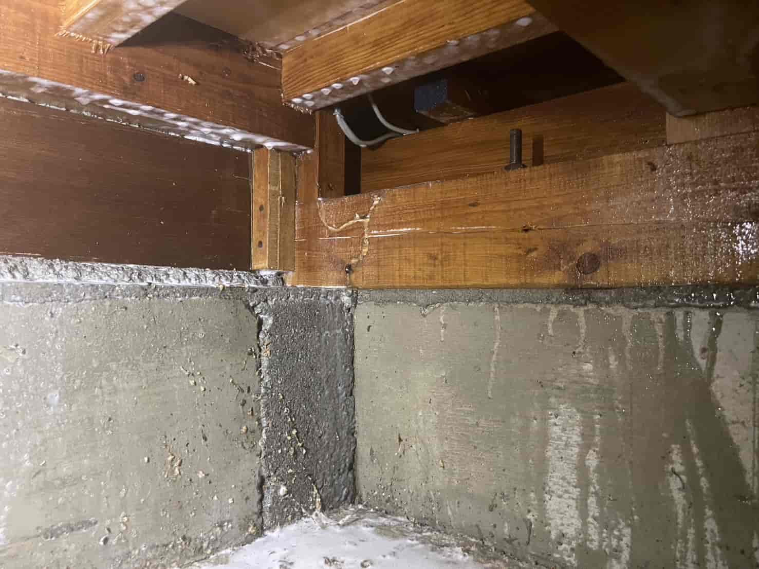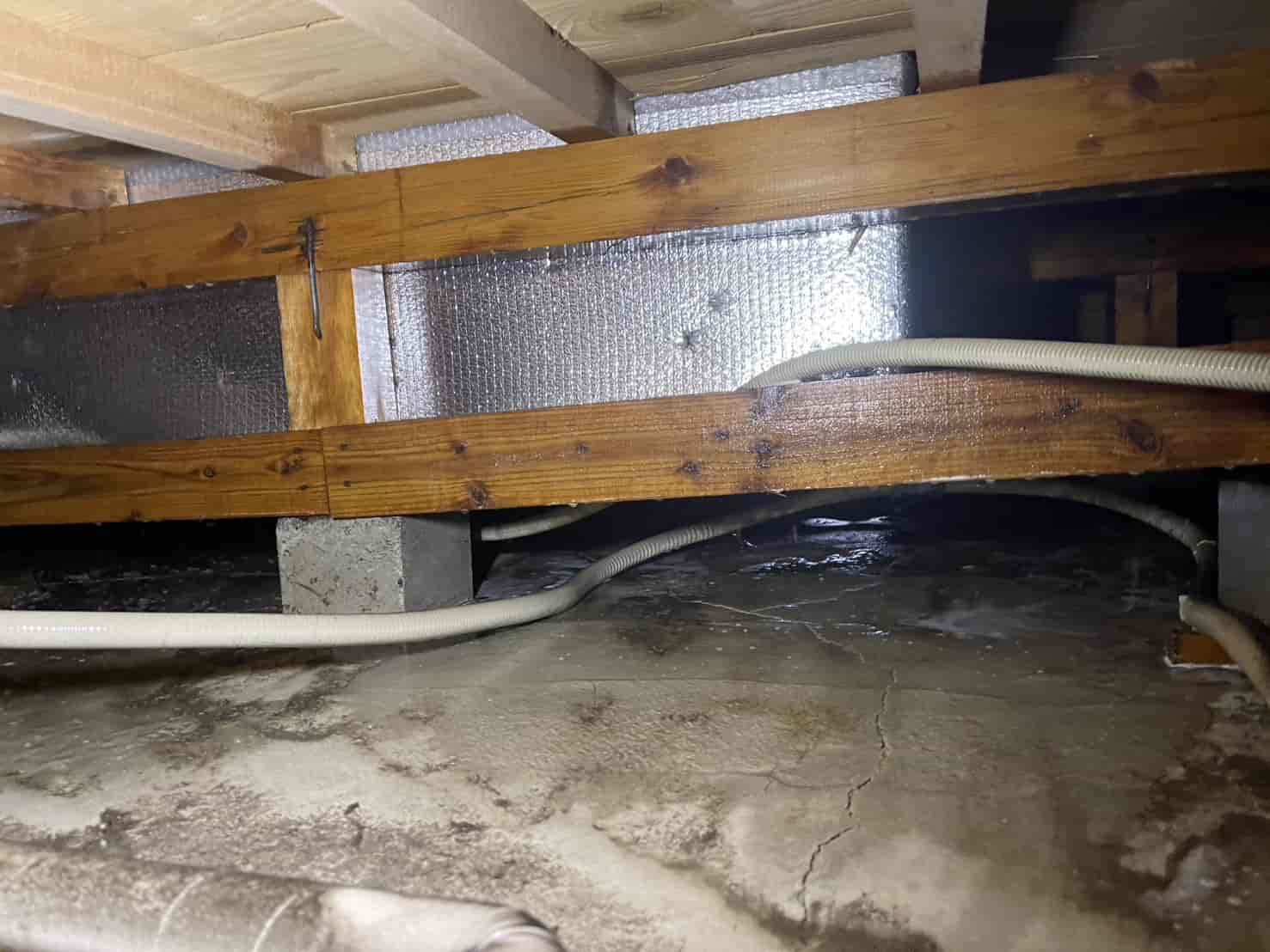 さらに、広縁下の根太には小規模ながらカビの発生が見られました。このカビは、シロアリ被害とセットで見られることが多く、床下の湿度が高い環境にあるサインです。特に葉山地域は海風の影響による湿気がこもりやすい気候特性を持つため、シロアリにとって活動しやすい住宅環境が自然に形成されやすい点に注意が必要です。