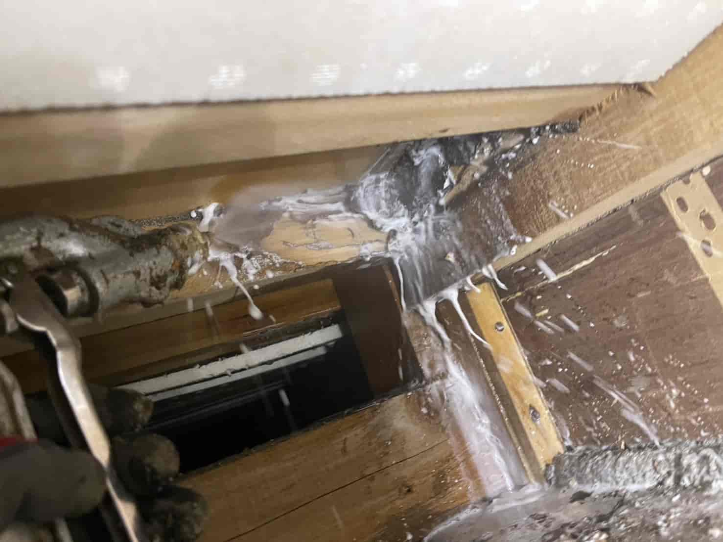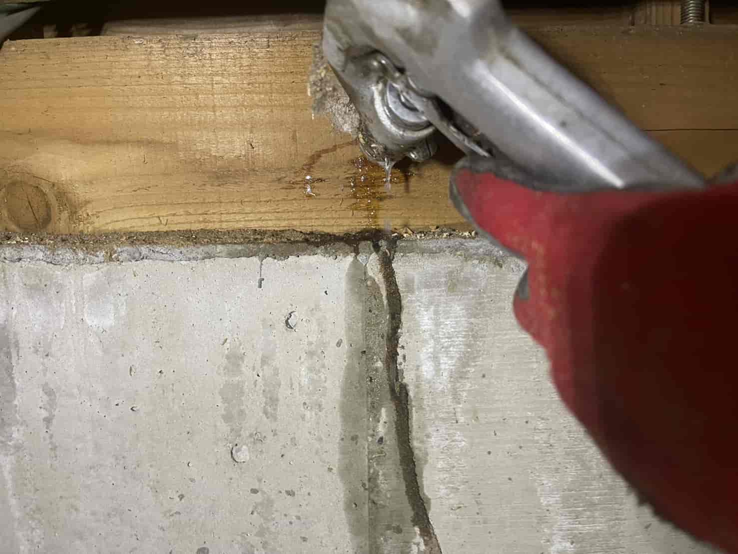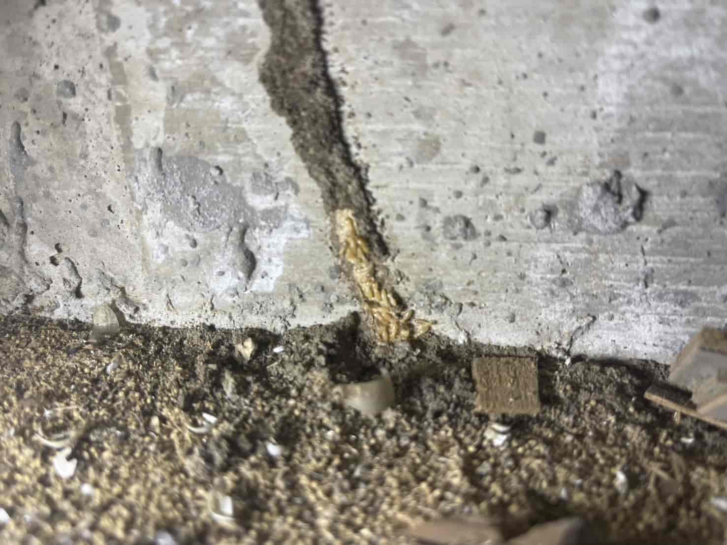 玄関・和室・広縁で蟻道を確認/木部穿孔注入・玄関コンクリート穿孔注入施工