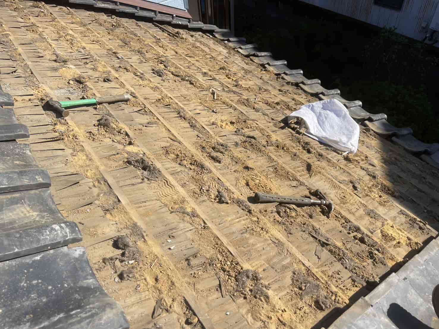 まずは破損した瓦を丁寧に撤去し、下地の状態を確認。