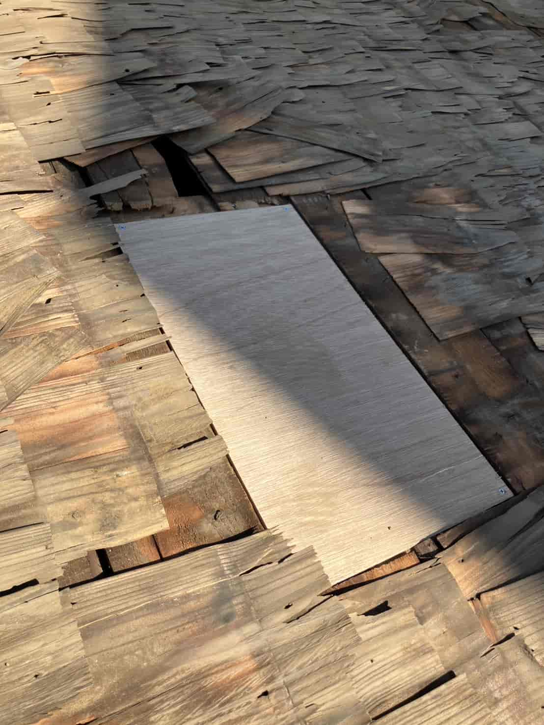 見た目以上に木下地が傷んでおり、一部の野地板には腐朽(ふきゅう)が見られました。