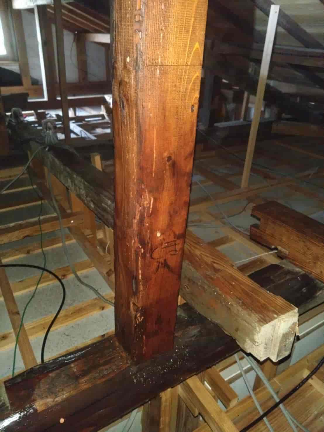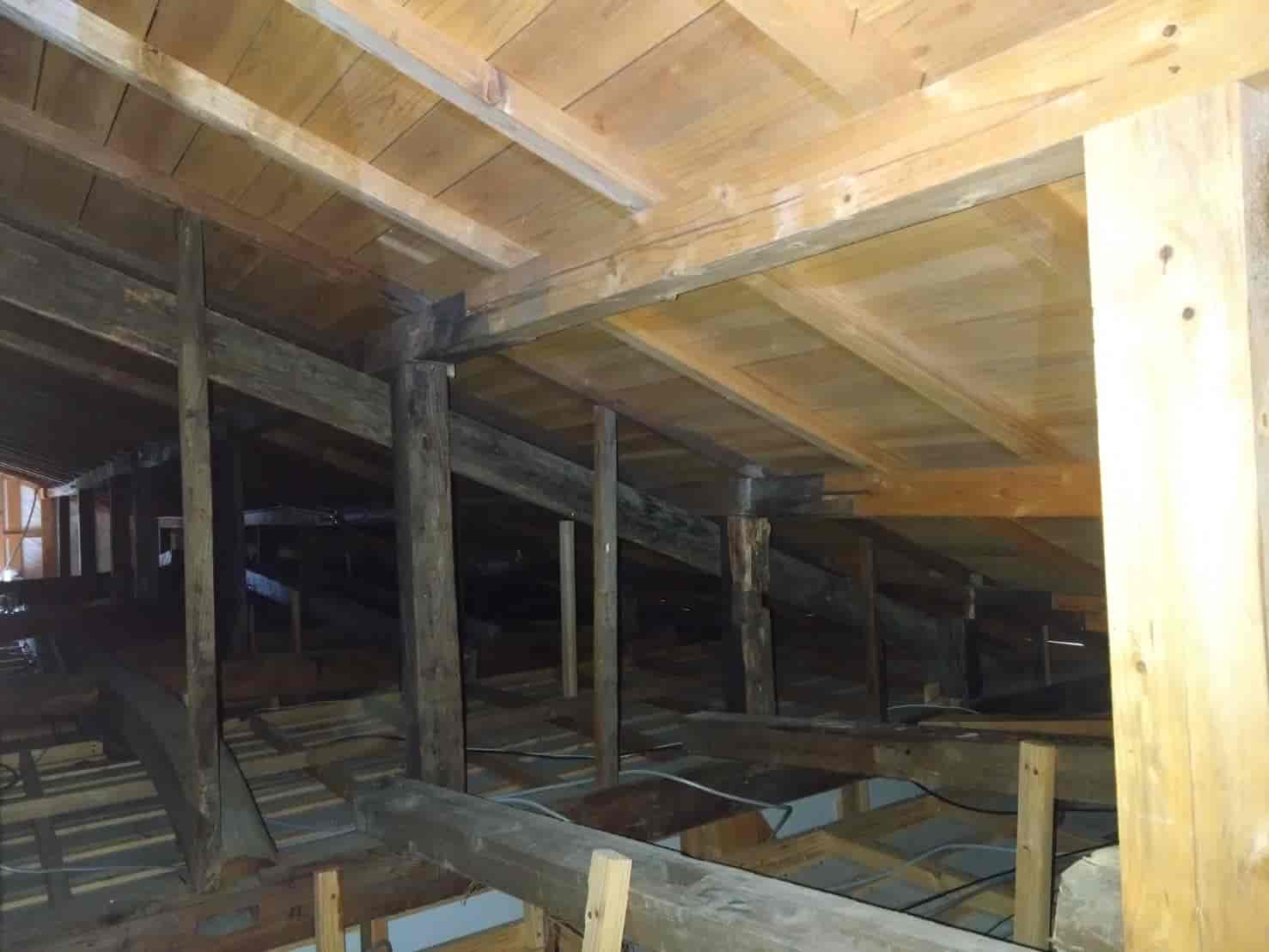 屋根裏の梁・垂木・小屋組にも薬剤処理を行い、被害の再発を防ぎます。