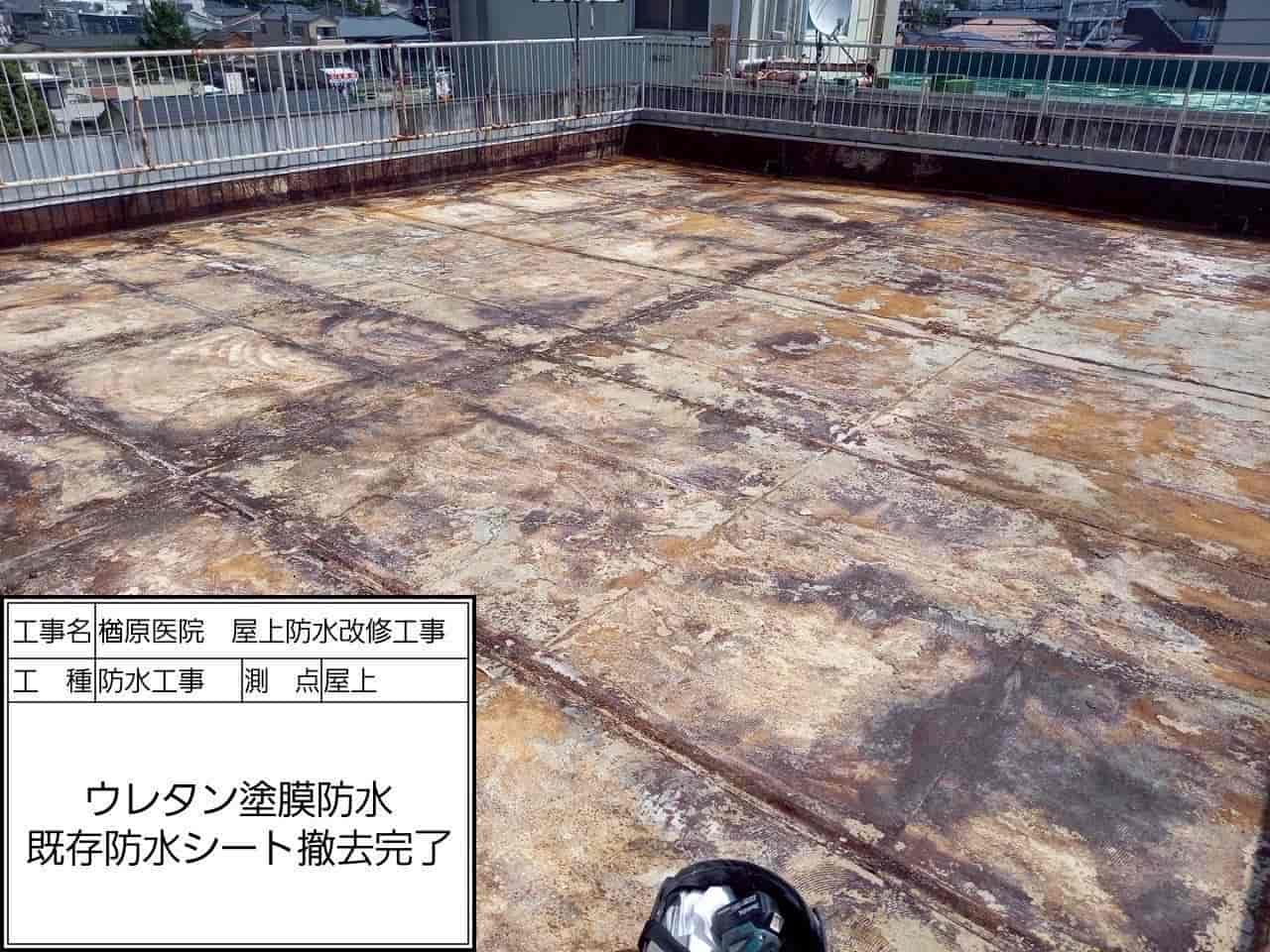 中途半端に残すと、新しい防水層の密着不良や再膨れの原因となるため、状態を確認しながら適切に剥がします。