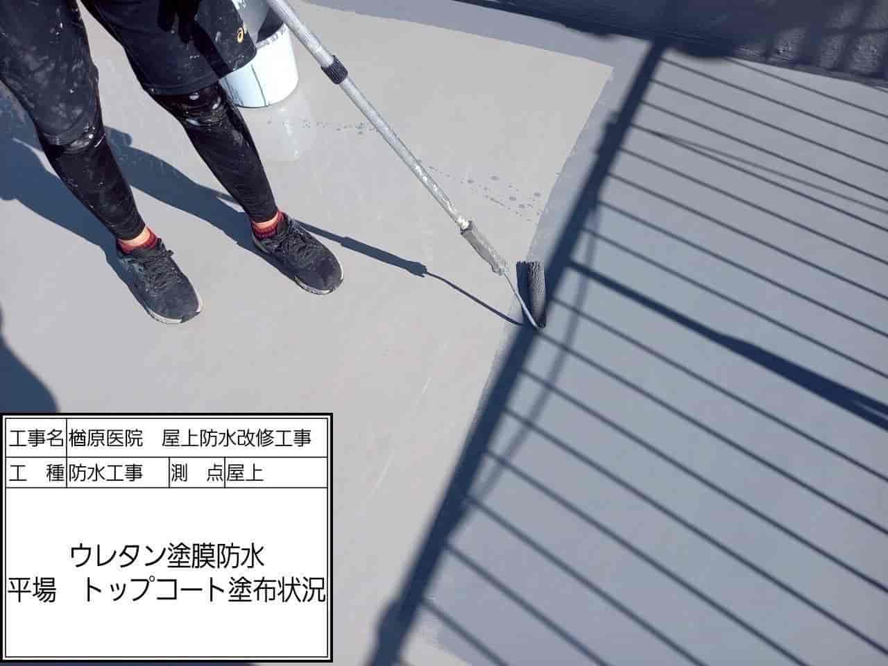 最後にトップコートを施工し、紫外線や風雨から防水層を保護します。